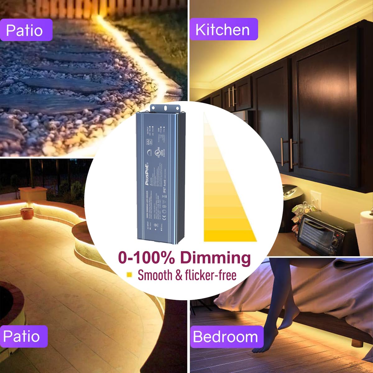 - UL-Listed Safety & High quality dimming: Our 24V 300W dimmable transformer is one of the safest transformers on the market. Built-in protections include Short Circuit/Over Loading/ Over Temperature protection. Ensuring the safety of both the driver itself and your project. You can have peace of mind knowing that your lights and installation are protected.