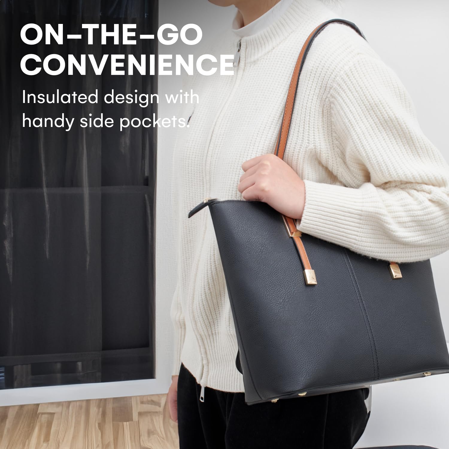 PortoVino Classic Tote Bag - Vegan Leather Wine Purse with Hidden Spout and Dispenser Flask for Wine Lovers that Holds and Pours 2 bottles of Wine! For Traveling, Concerts, Bachelorette Party - Black