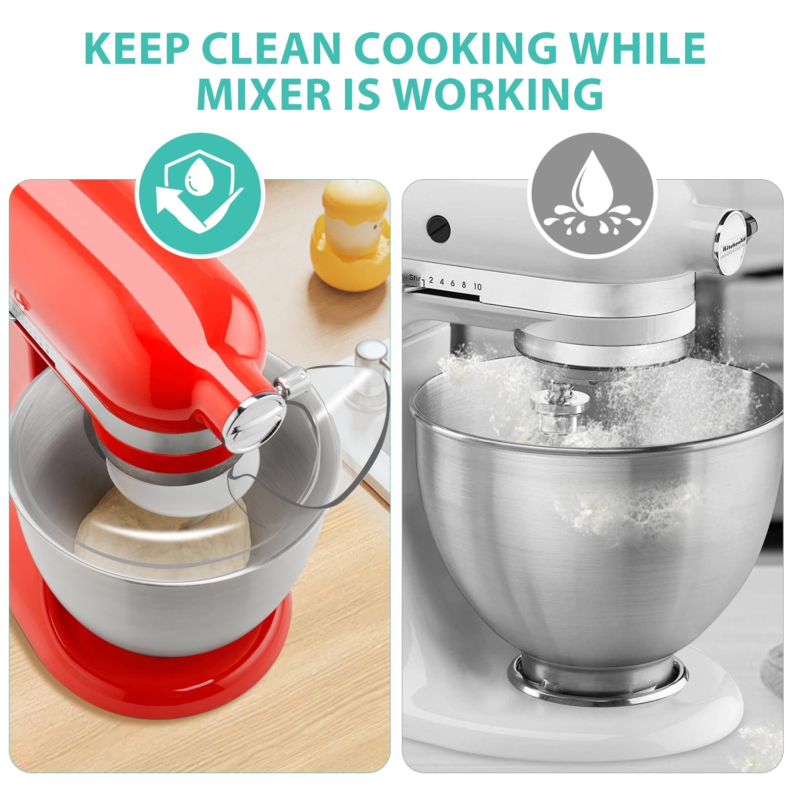 - Splash Guard: Pouring shield and mixer bowl splatter guard lids is compatible with Kitchenaid 4.5-5 quart, keeping clean and organized