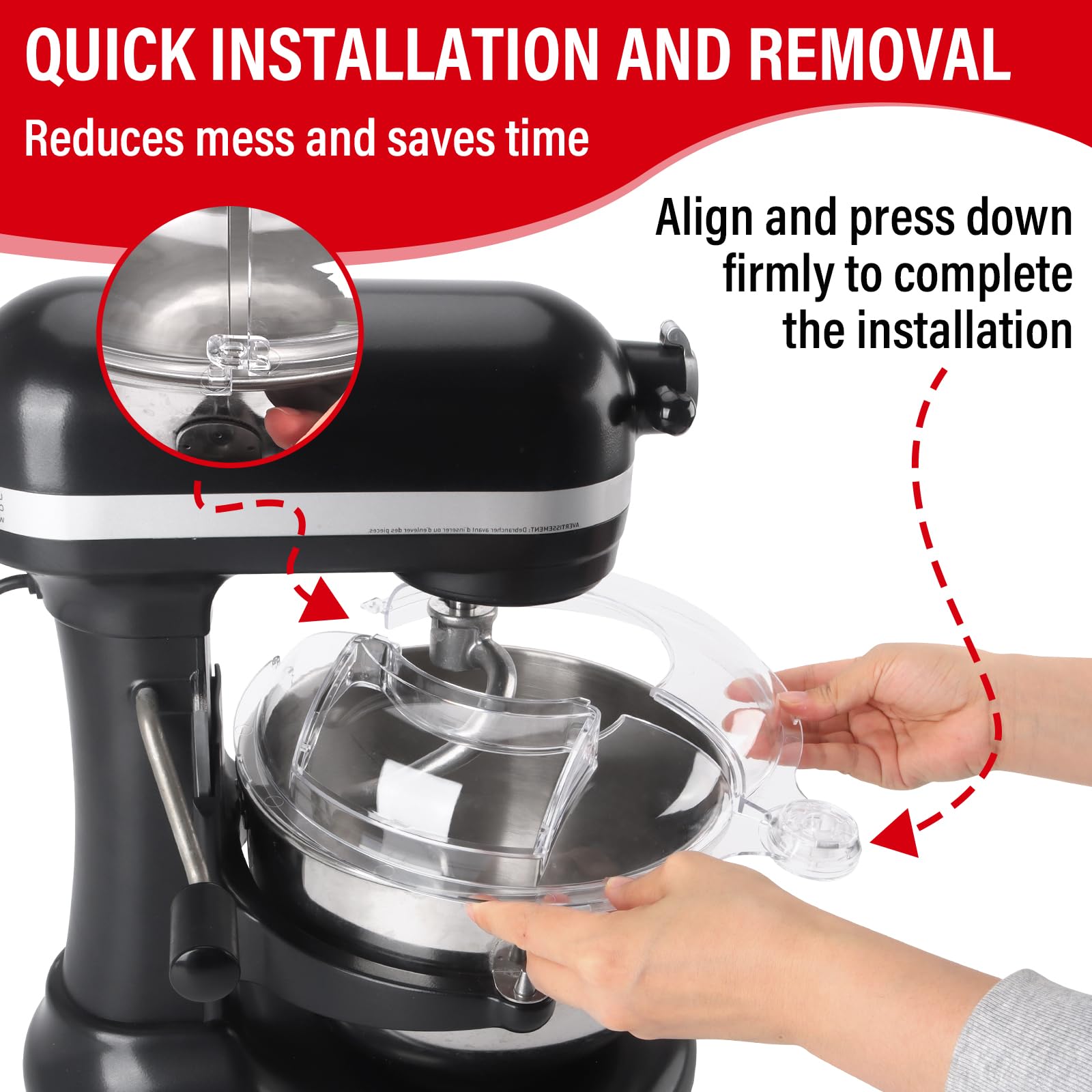 Pouring Shield for KitchenAid 6-7Qt Bowl Lift Stand Mixer (for Stainless Steel Bowls Only), Splash Guard Mixers Bowl Cover for Kitchen aid Accessories and Attachments (Clear)