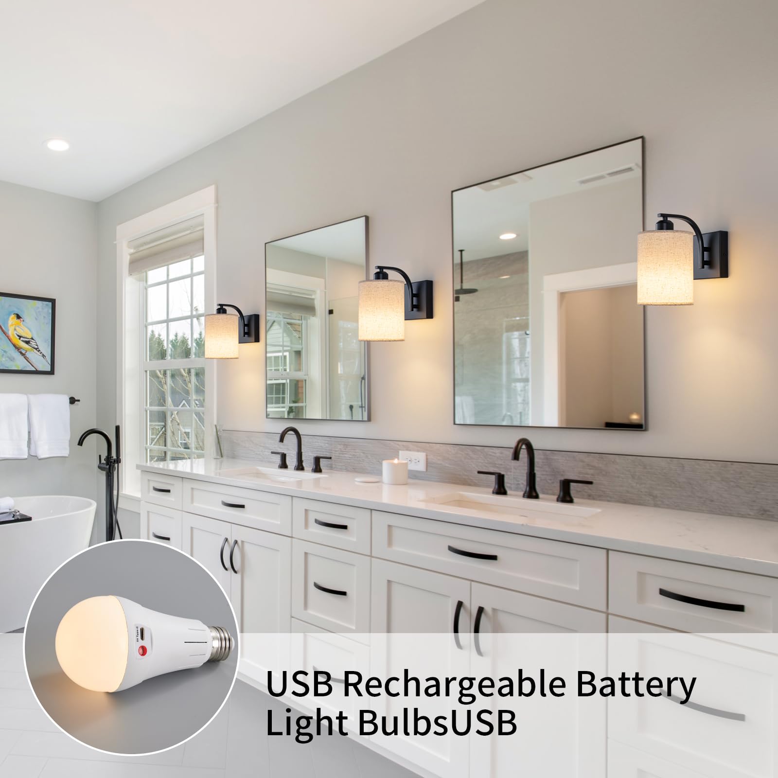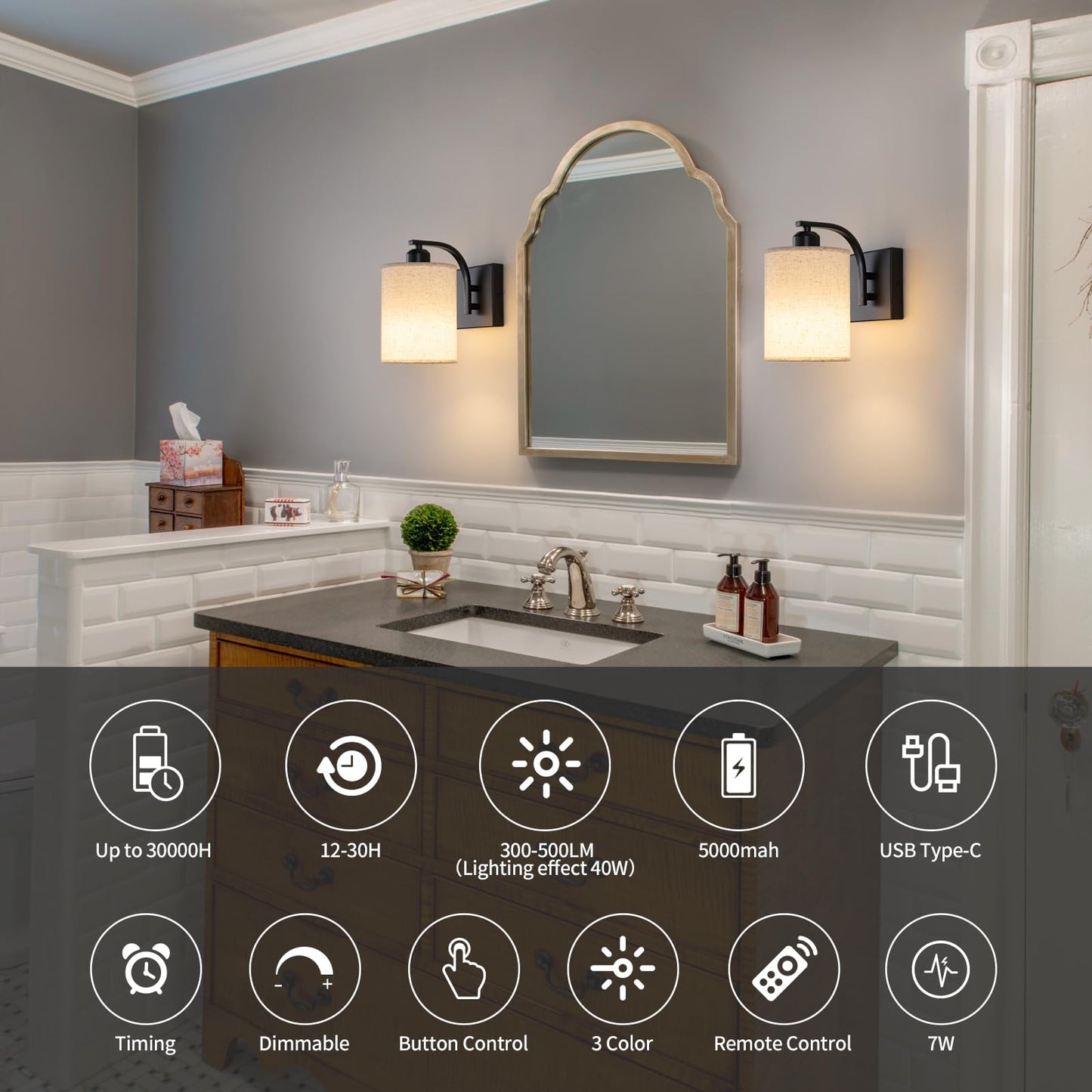 - 【Rechargeable and Timing】: Enjoy wireless lighting with our matte black wall lamps. Each set includes two sconces with USB chargeable bulbs that provide 300-500 LM of bright light. With a 5000mAh battery, these sconces can light up your space for 12-30 hours on a full charge. The magnetic base bulb allows for easy charging, and the 4 timing options (15min, 30min, 1h, 2h) give you control over when the lights turn on and off.