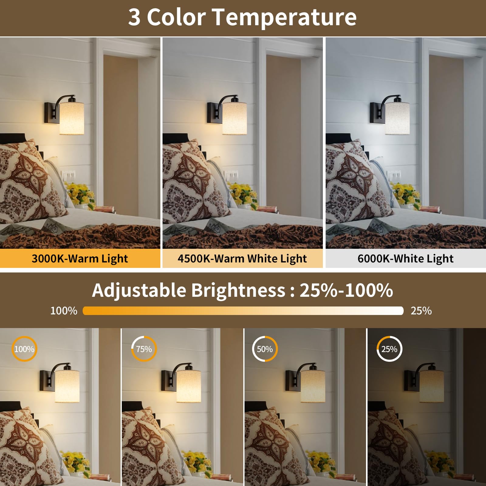 - 【Dimmable and Adjustable 3 Color Temperatures】: Create the perfect ambiance for any occasion with our wall sconces. Choose from three color temperatures - 3000K warm light, 4000K natural light, and 6000K white light. Each color option comes with four brightness settings (25%, 50%, 75%, 100%), allowing you to customize the lighting to suit your needs. All of these options can be easily controlled using the included remote control.