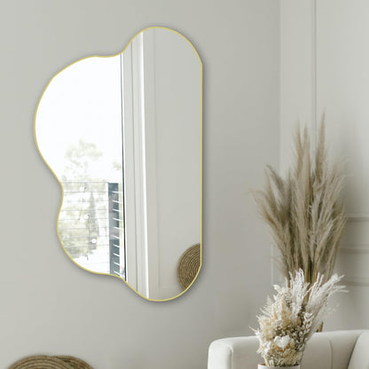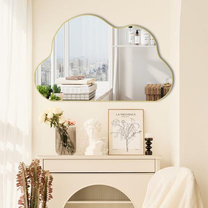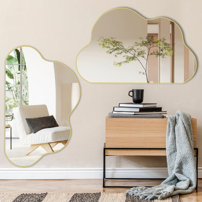 POZINO Gold Irregular Cloud Shaped Asymmetrical Wall Mirror, Organic Abstract for Living Room, Bathroom, Bedroom, Entryway, 33.5"x20.5"