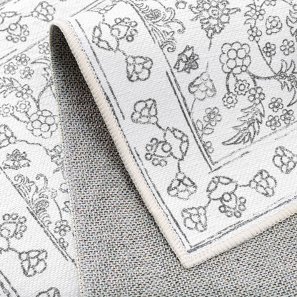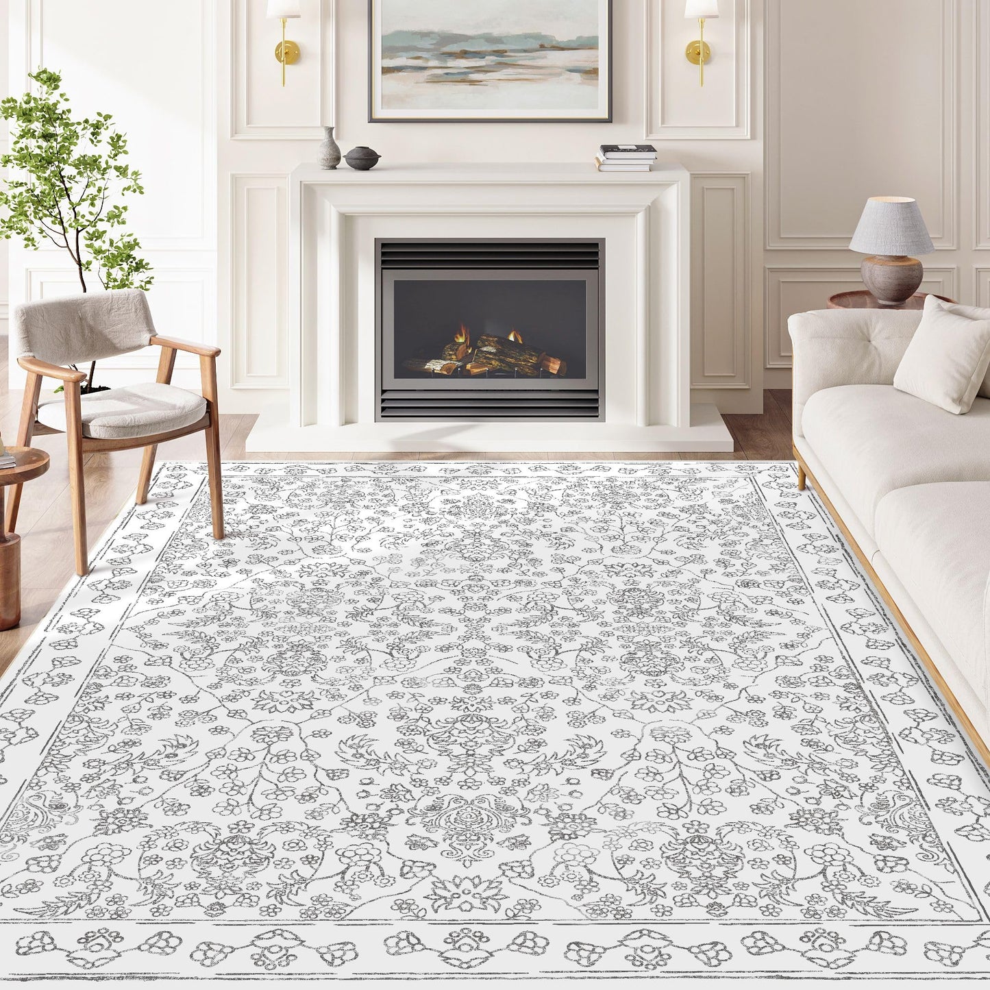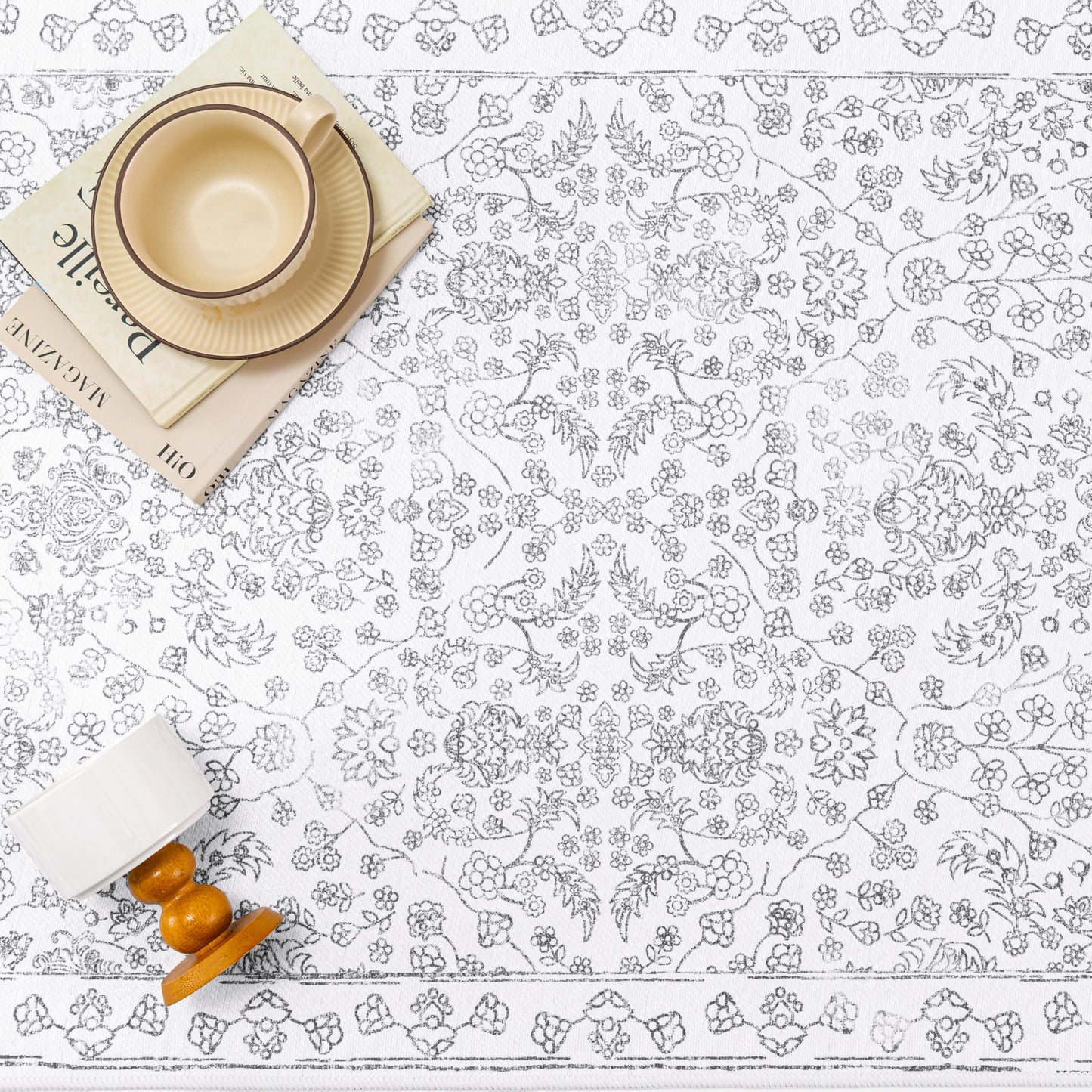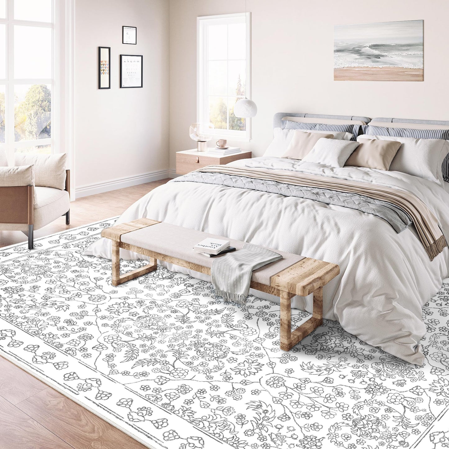 PureCozy Floral Area Rug 6x9 Washable Grey Carpet Non Slip Large Boho Thin Farmhouse Throw Accent Rug for Living Room Bedroom Office Kitchen Bathroom