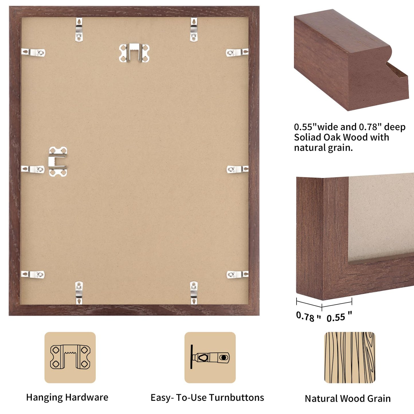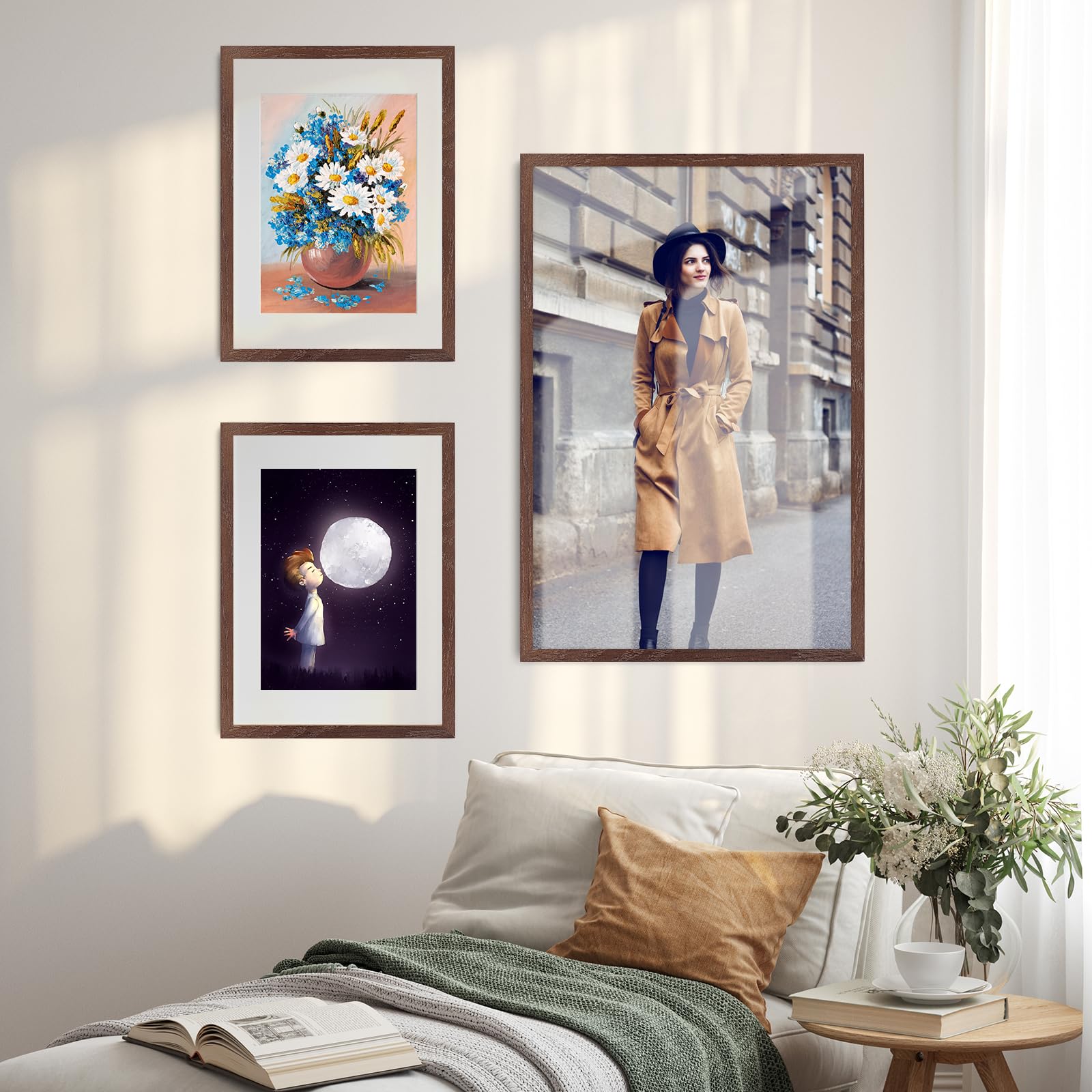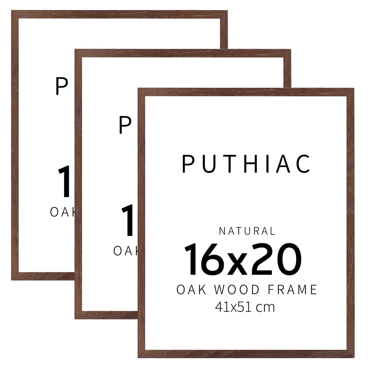 puthiac 16x20 Walnut Picture Frames for Wall - Minimalist 16x20 Oak Wood Frames, 16"x20" Picture Frame Wood, Natural Solid Wooden Picture Frames for Wall Art Photo and Prints (3 Pack, Walnut)