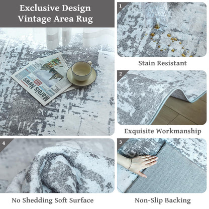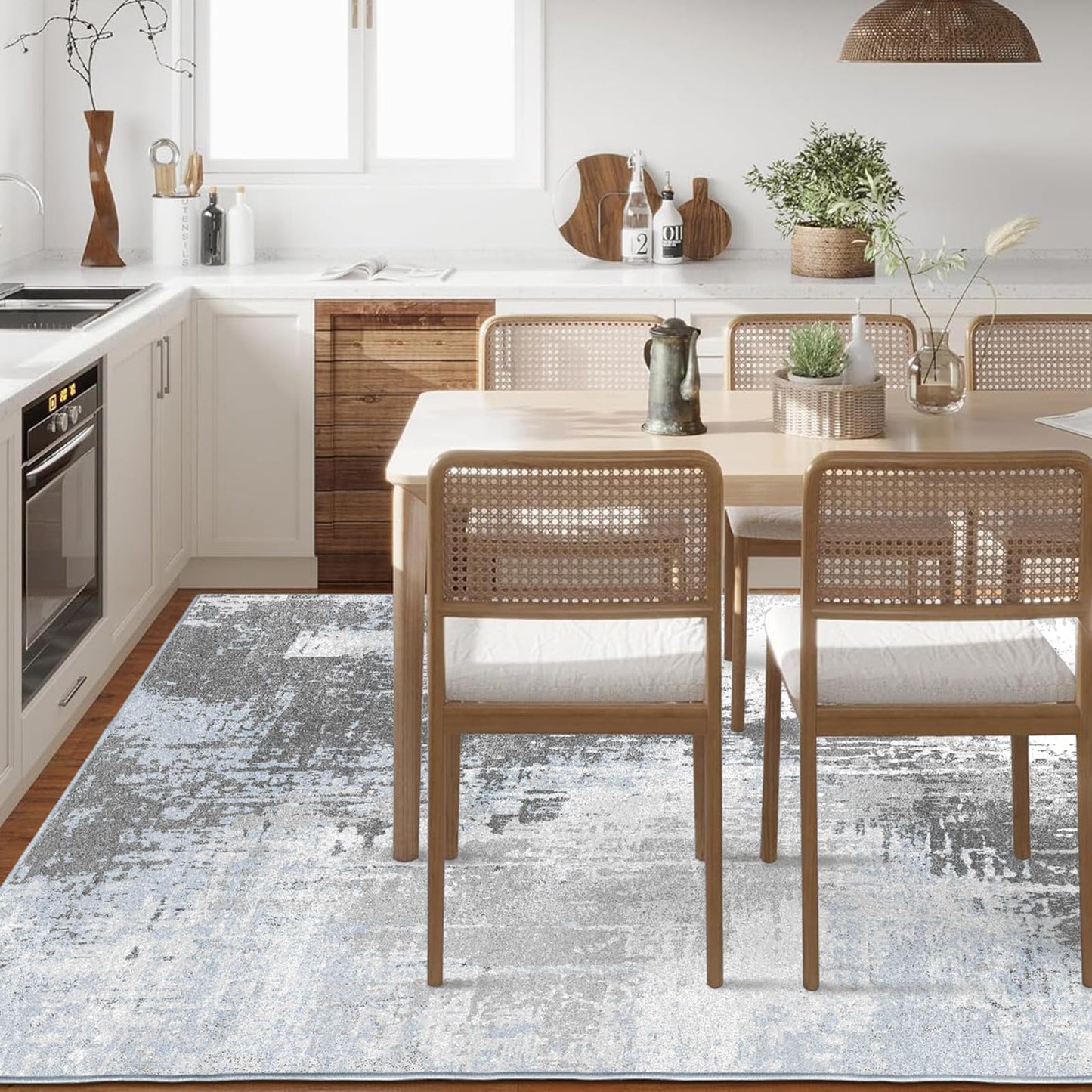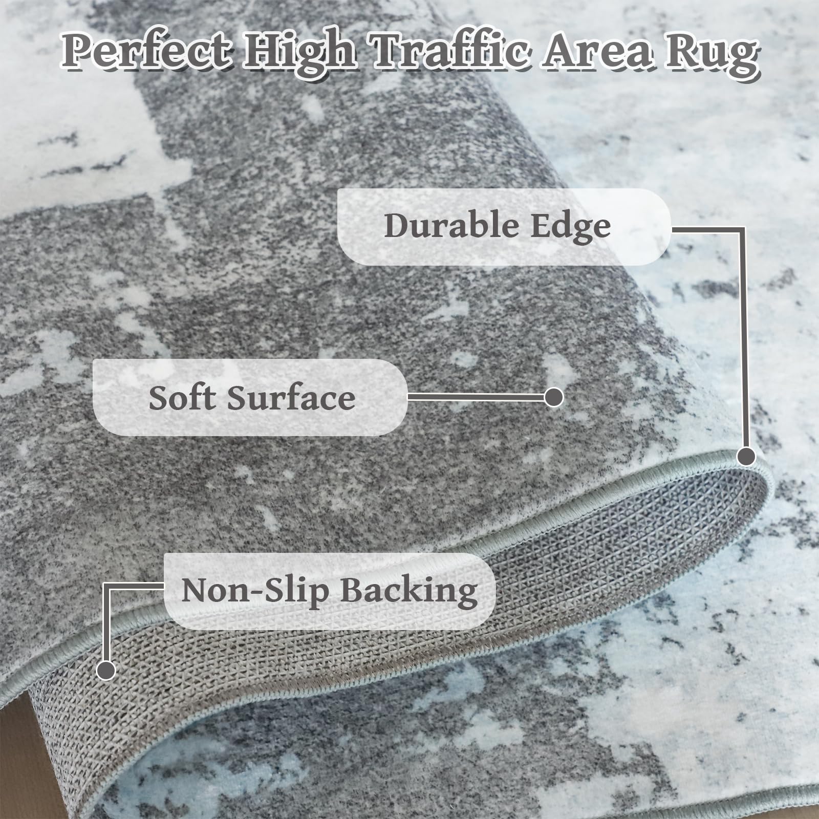 QD-Udreamy 6x9 Area Rugs - Machine Washable Area Rugs 6x9 for Living Room, Soft Washable Rugs 6x9, Non-Slip Washable Area Rug, Stain Resistant Abstract Low Pile Thin Washable Rug 6x9