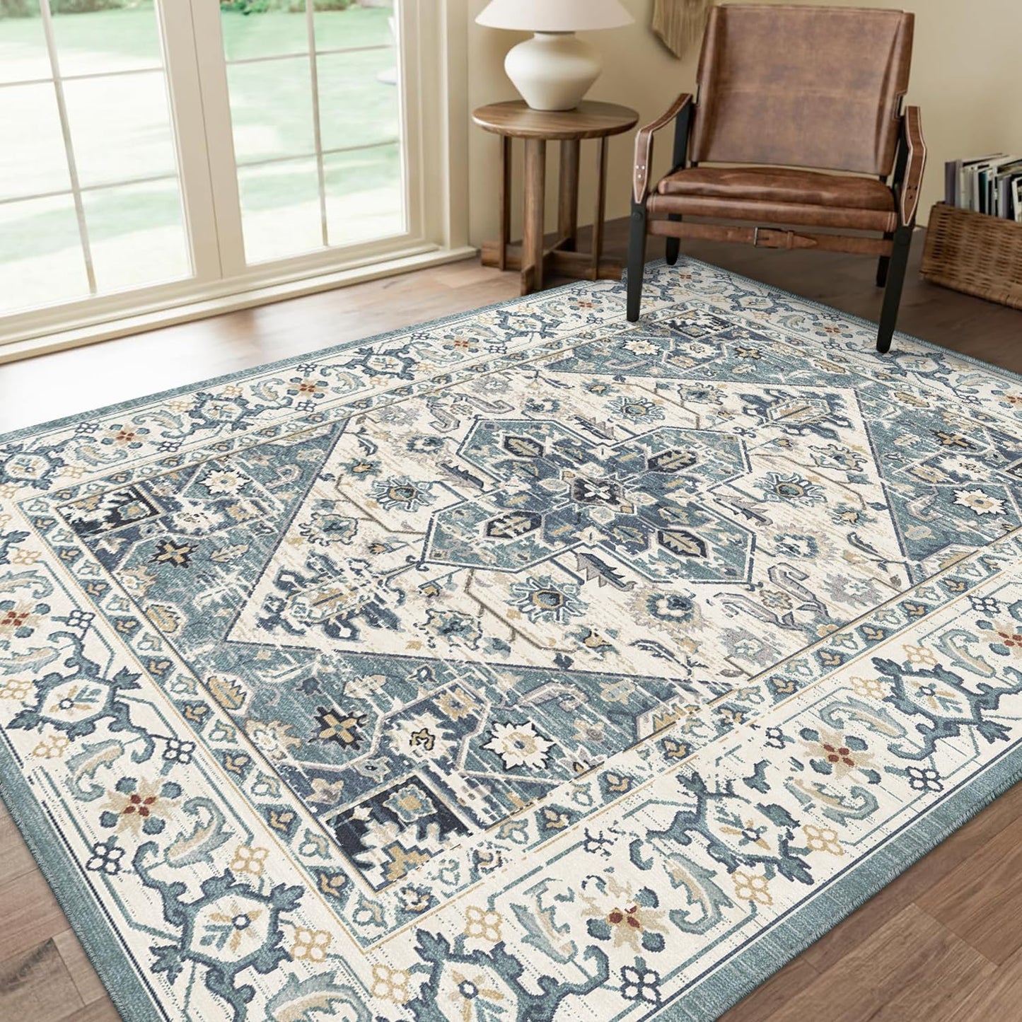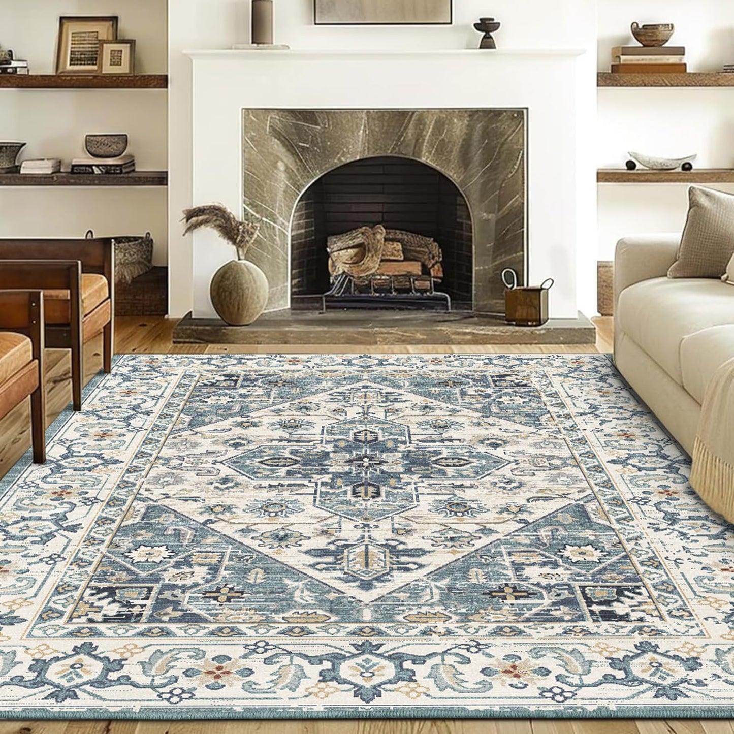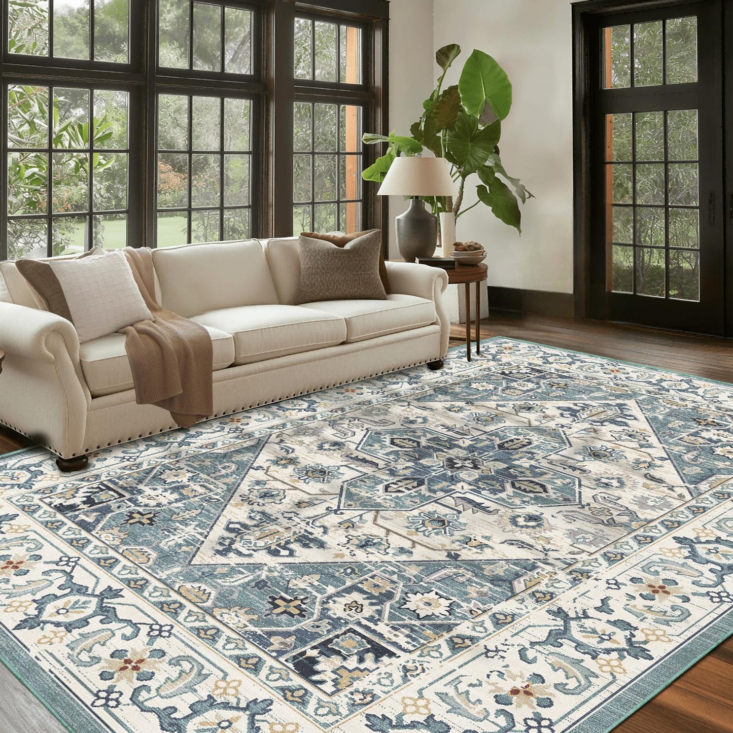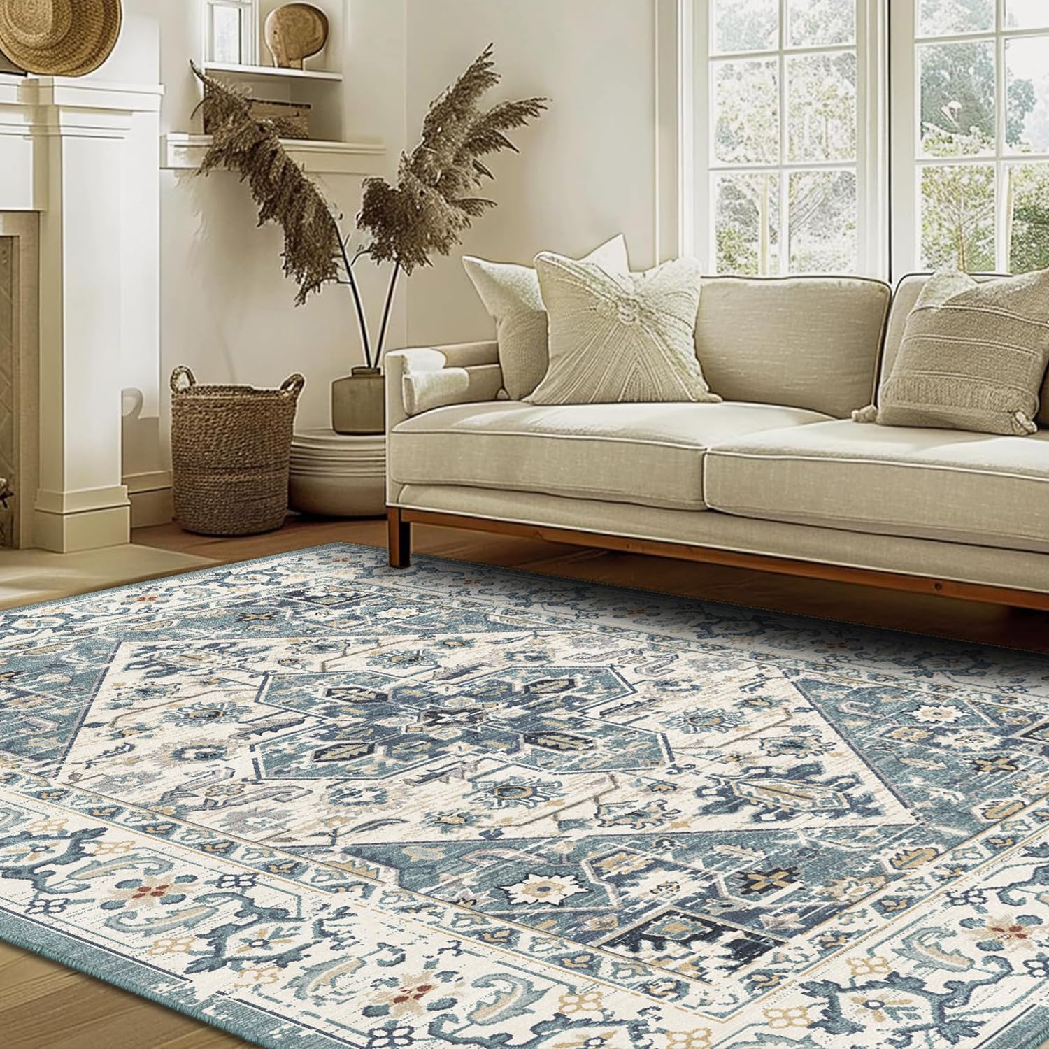 QD-Udreamy Area Rugs for Living Room - 6x9 Area Rugs, Machine Washable Rugs 6x9, Non-Slip, Stain Resistant Soft Boho Vintage Large Carpet Low Pile Thin Rugs for Living Room Bedroom