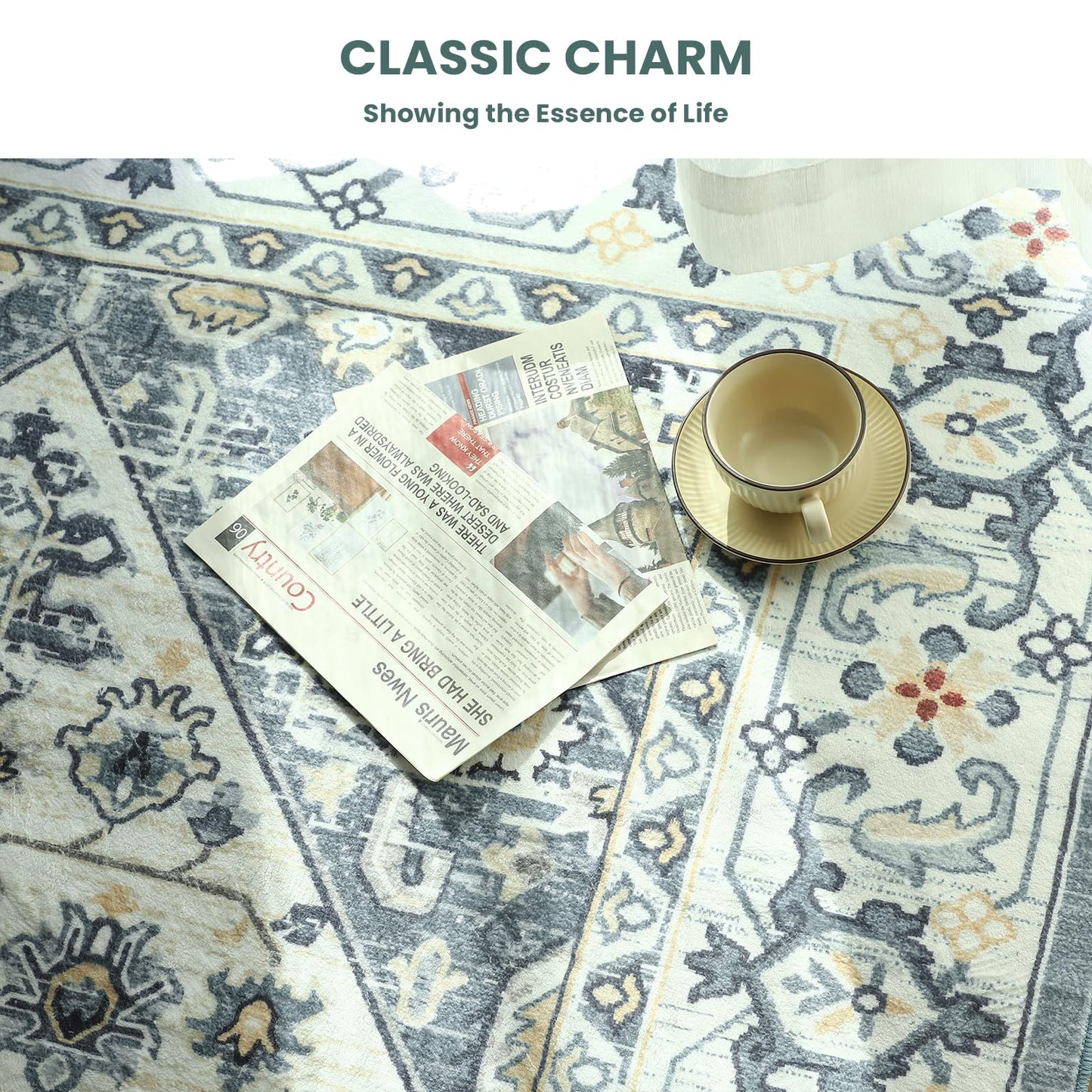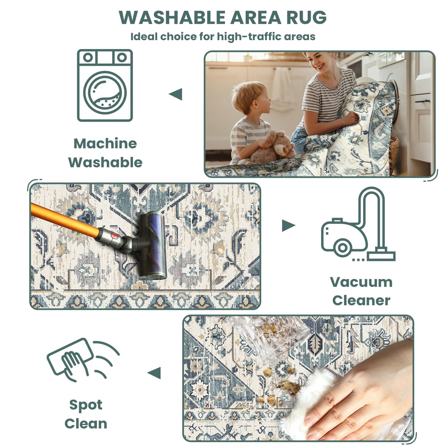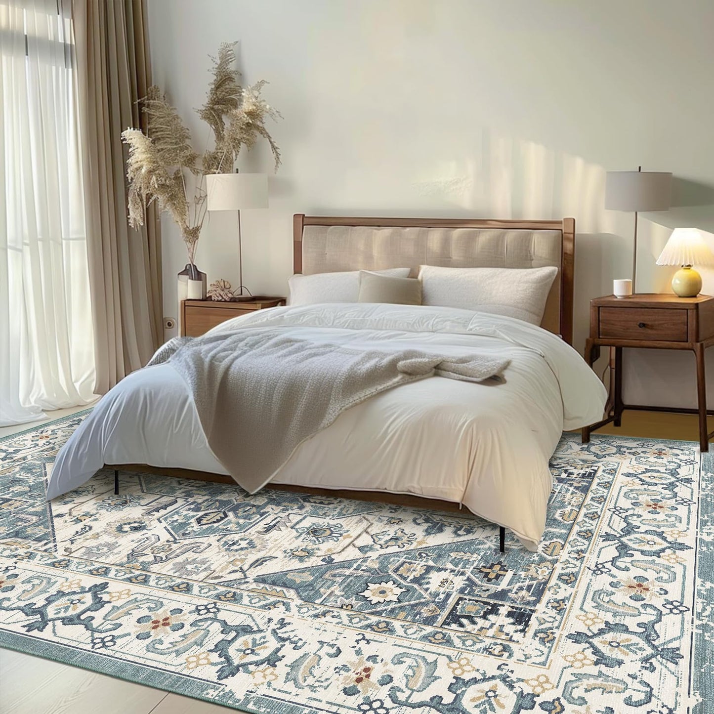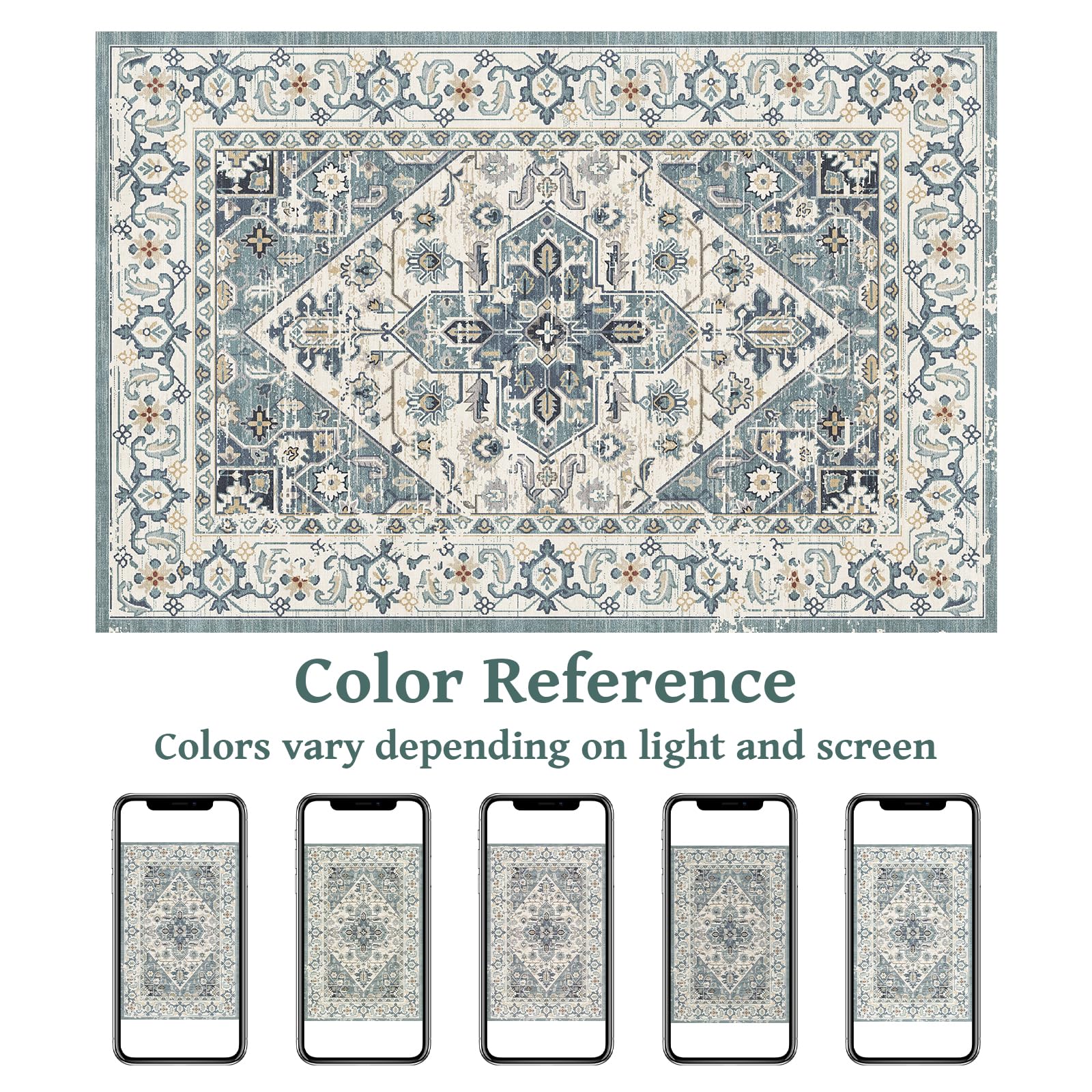 QD-Udreamy Area Rugs for Living Room - 6x9 Area Rugs, Machine Washable Rugs 6x9, Non-Slip, Stain Resistant Soft Boho Vintage Large Carpet Low Pile Thin Rugs for Living Room Bedroom