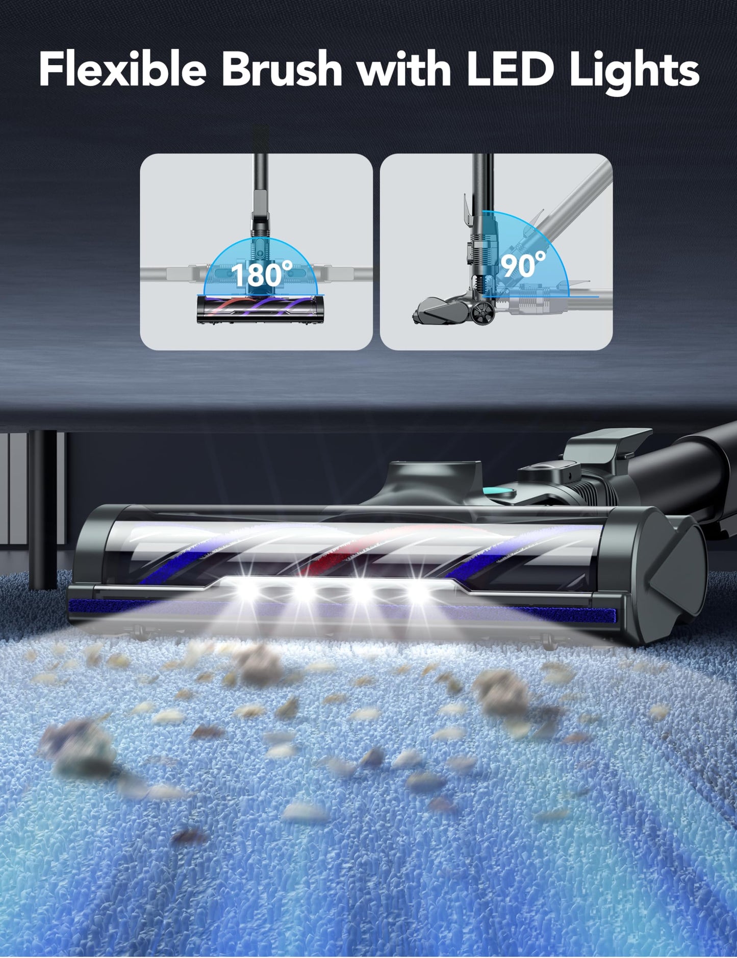 - Versatile Cleaning Modes: The vacuum cleaners for home offers 2 modes - low power mode for light cleaning and high power mode for tackling tougher dirt and debris. Whether you need to quickly clean up everyday messes or tackle stubborn pet hair or dirt, this vacuum cordless has got you covered