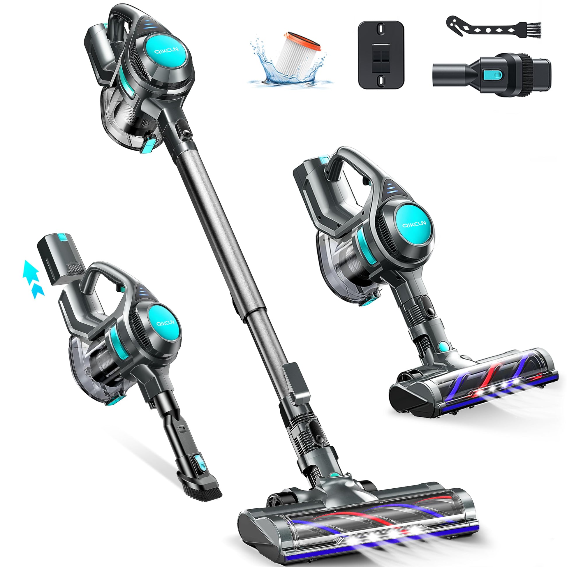 - Ideal for Pet Hair, Hardwood Floors, and Carpets: This rechargeable stick vacuum is specifically designed to tackle pet hair, hardwood floors, and carpets. Whether you have furry friends at home or multiple flooring types, this vacuum cleaner is an ideal choice. Experience hassle-free cleaning like never before with QikCln cordless vacuum cleaner
