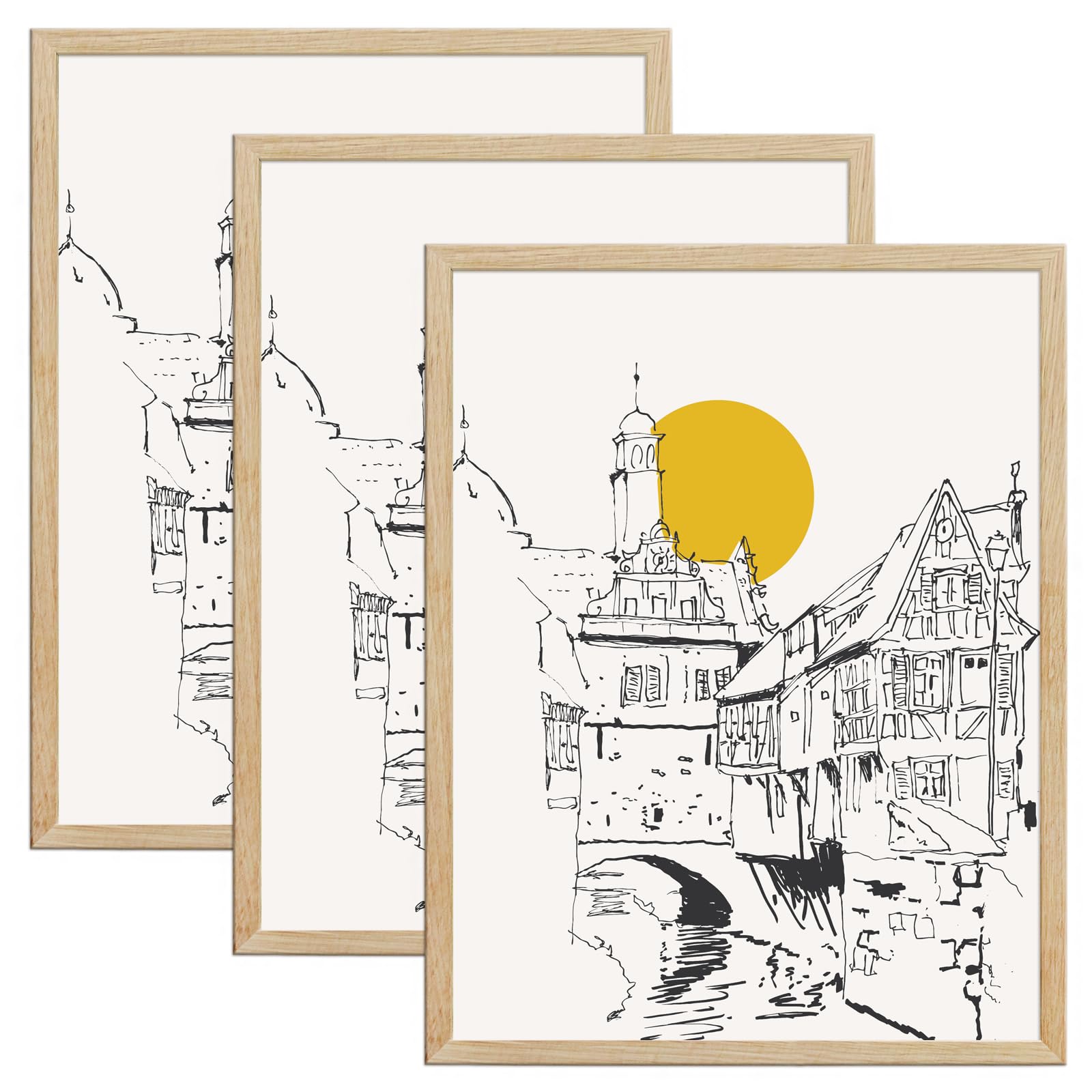 - 【18 x 24 Modern Wall gallery Frame】18 x 24 picture frame is packed well with proprietary foam and corner braces sealing. It contains 3 pieces oak frames in the same size for photos, posters and any pictures.