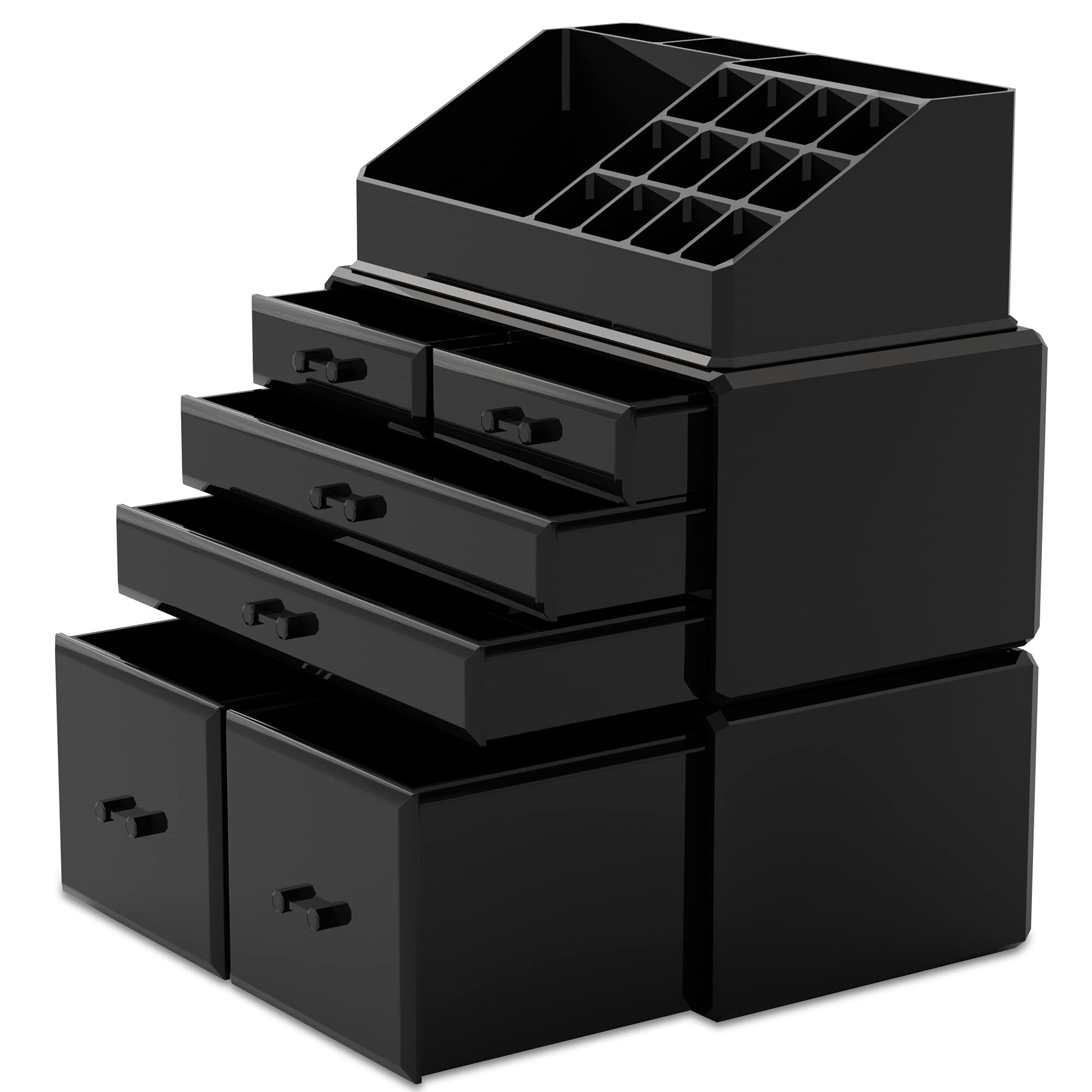 READAEER Makeup Organizer 3 Pieces Cosmetic Storage Case with 6 Drawers (Black)