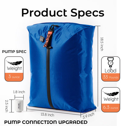 - 【Tiny wireless Pump】The 1.8x2.5 inch/3 ounce tiny vacuum pump is UPGRADED to fit one way valve with quick and simple connection, highly portable and convenient for travel storage. One full charge by type-C will last for your whole trip (20 times). No wires or manual pumping required; it's a hassle-free experience.