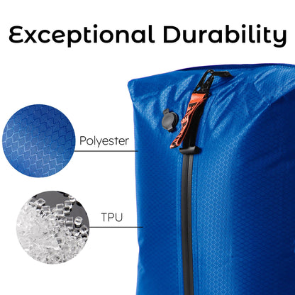- 【Exceptional Durability】The travel vacuum bags with pump is having a reusability over 1000 times through composited material of polyester & TPU and IP67 airtight zipper.