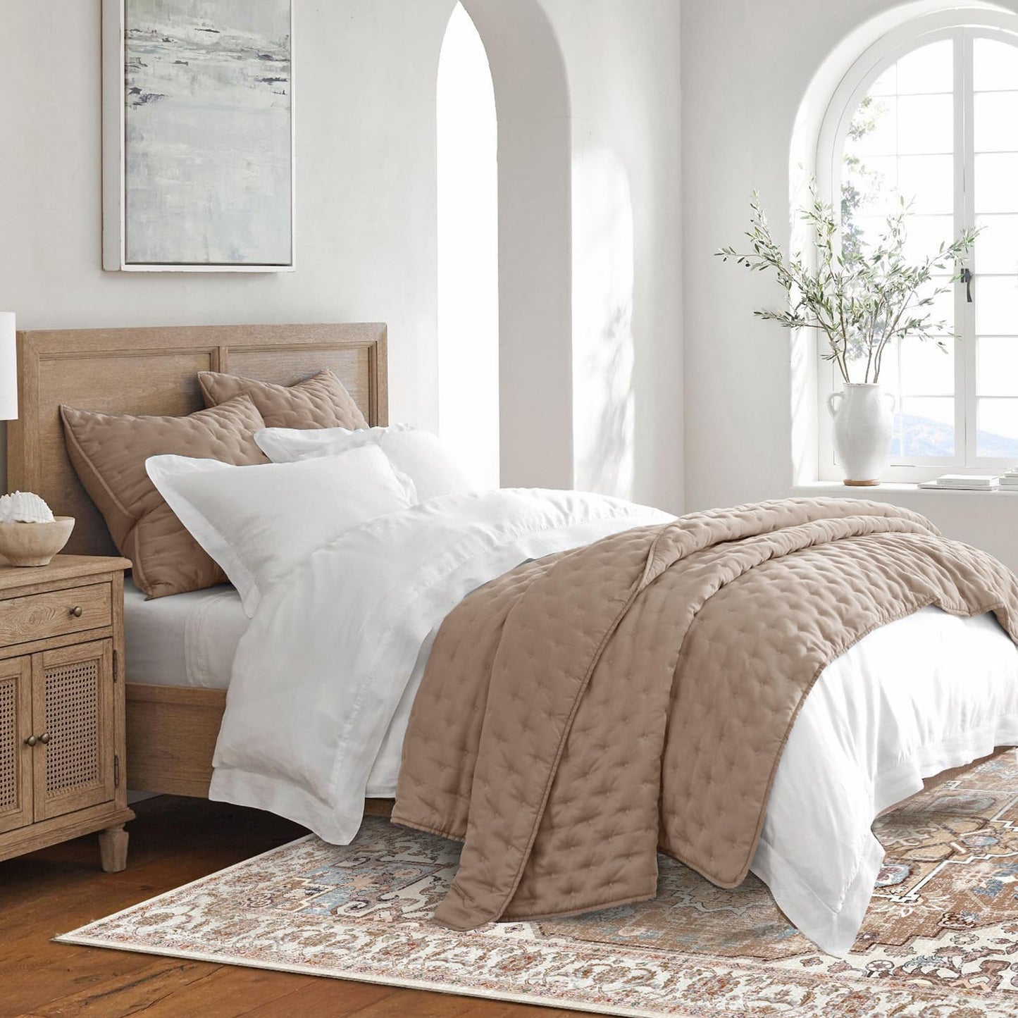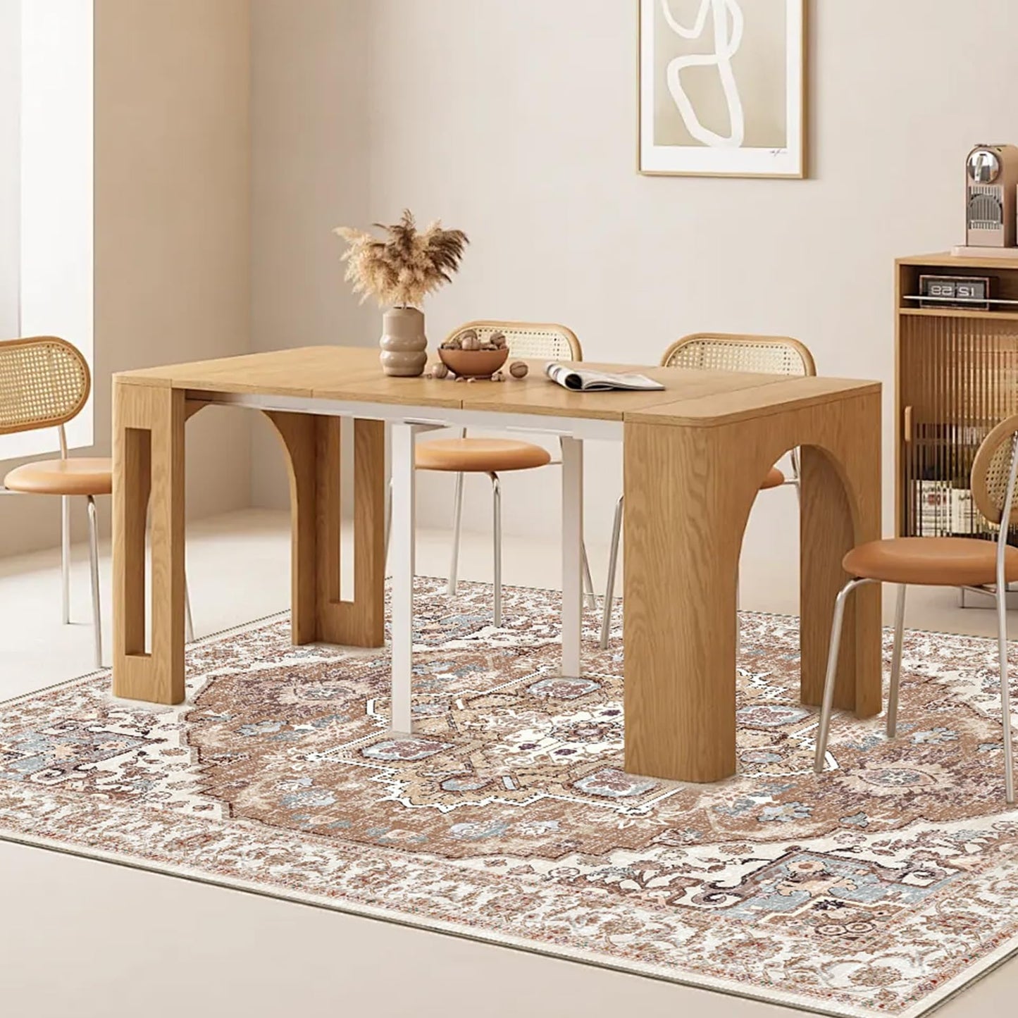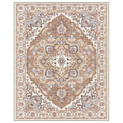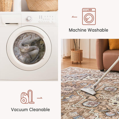 ROCYJULIN 8x10 Area Rug for Living Room and Bedroom - Low-Pile Faux Wool Carpet With Non-Slip TPR Backing, Large Washable for High Traffic Areas - Coffee Beige & Cream