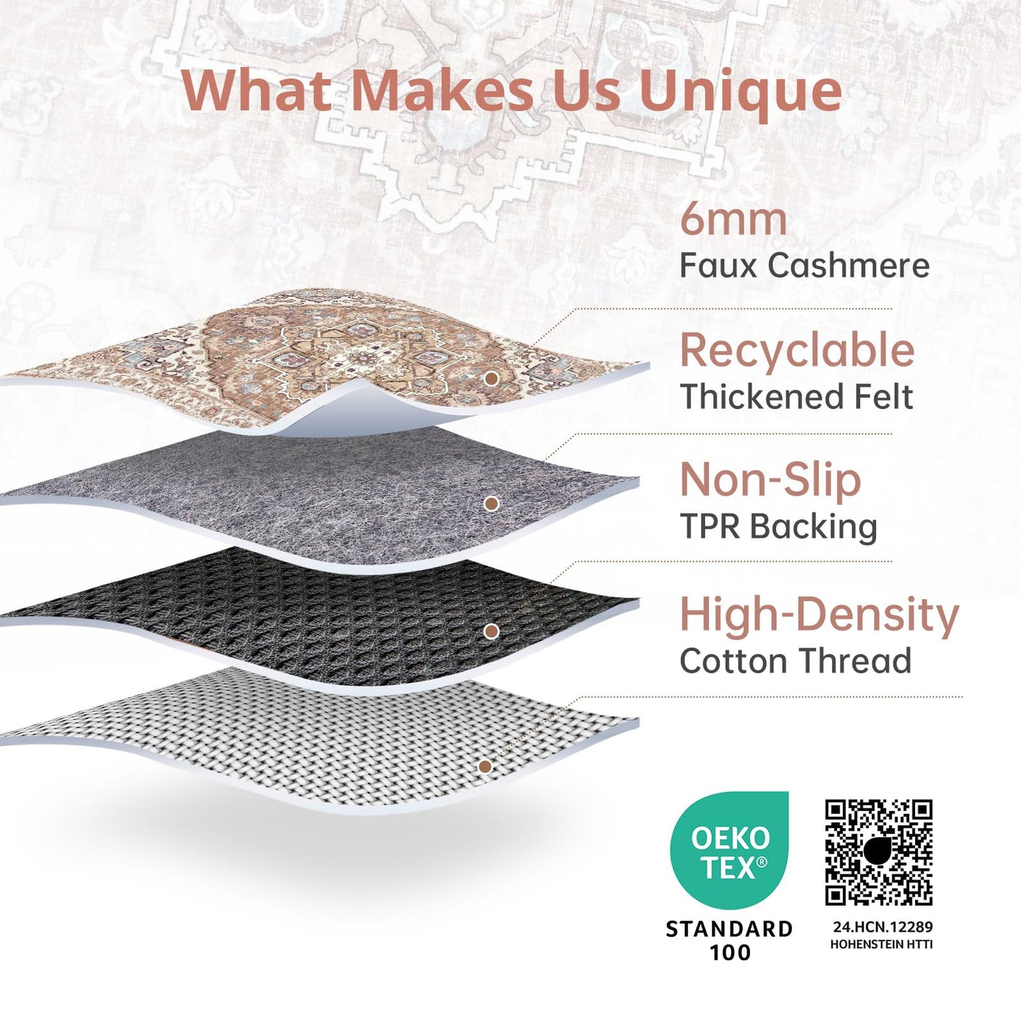 - Gentle on Your Skin: Our 600 GSM ultra-soft low-pile area rug is made from premium faux wool fibers, designed to pamper your feet with every step with the ultimate cozy experience. The rugs for living room are washable, making them ideal for households