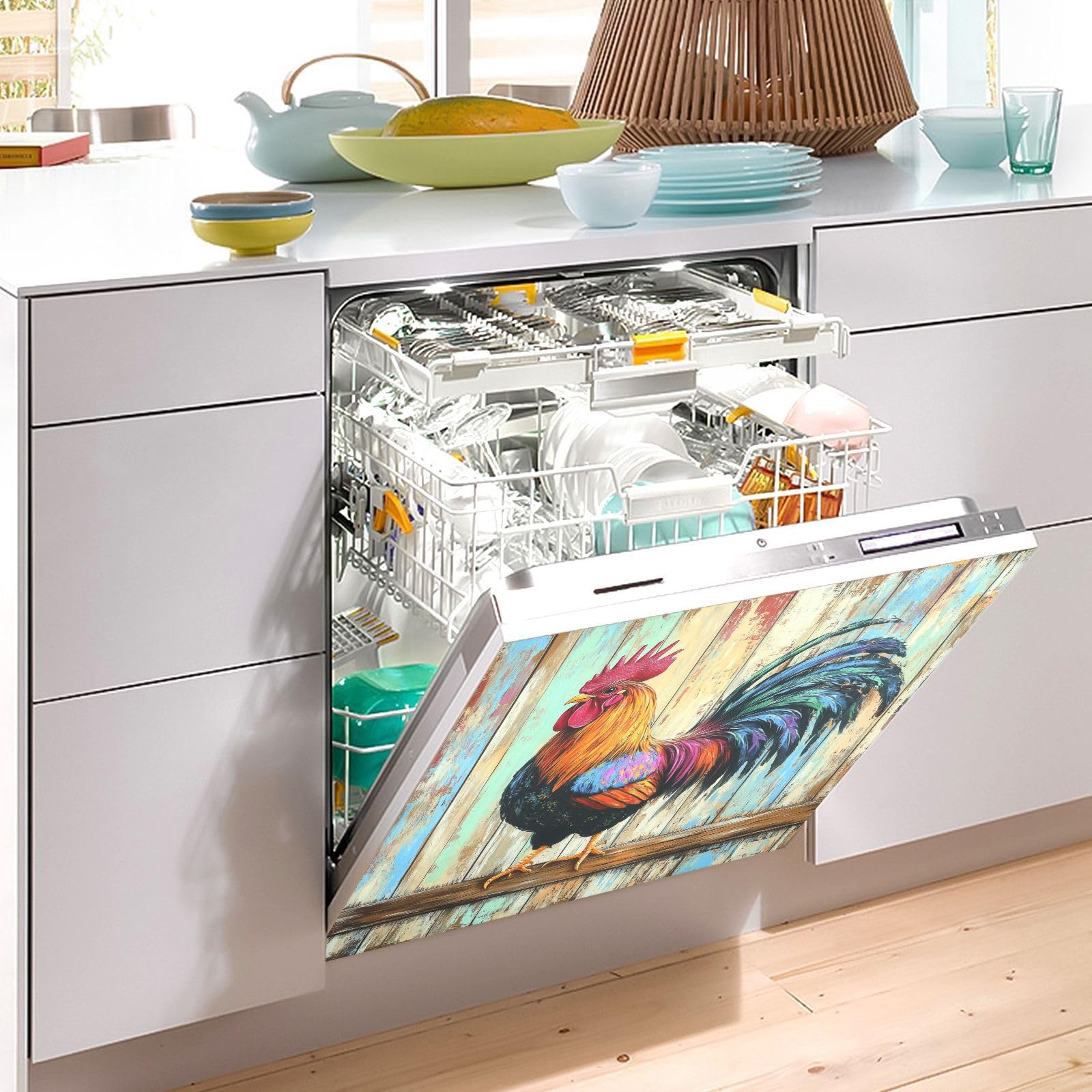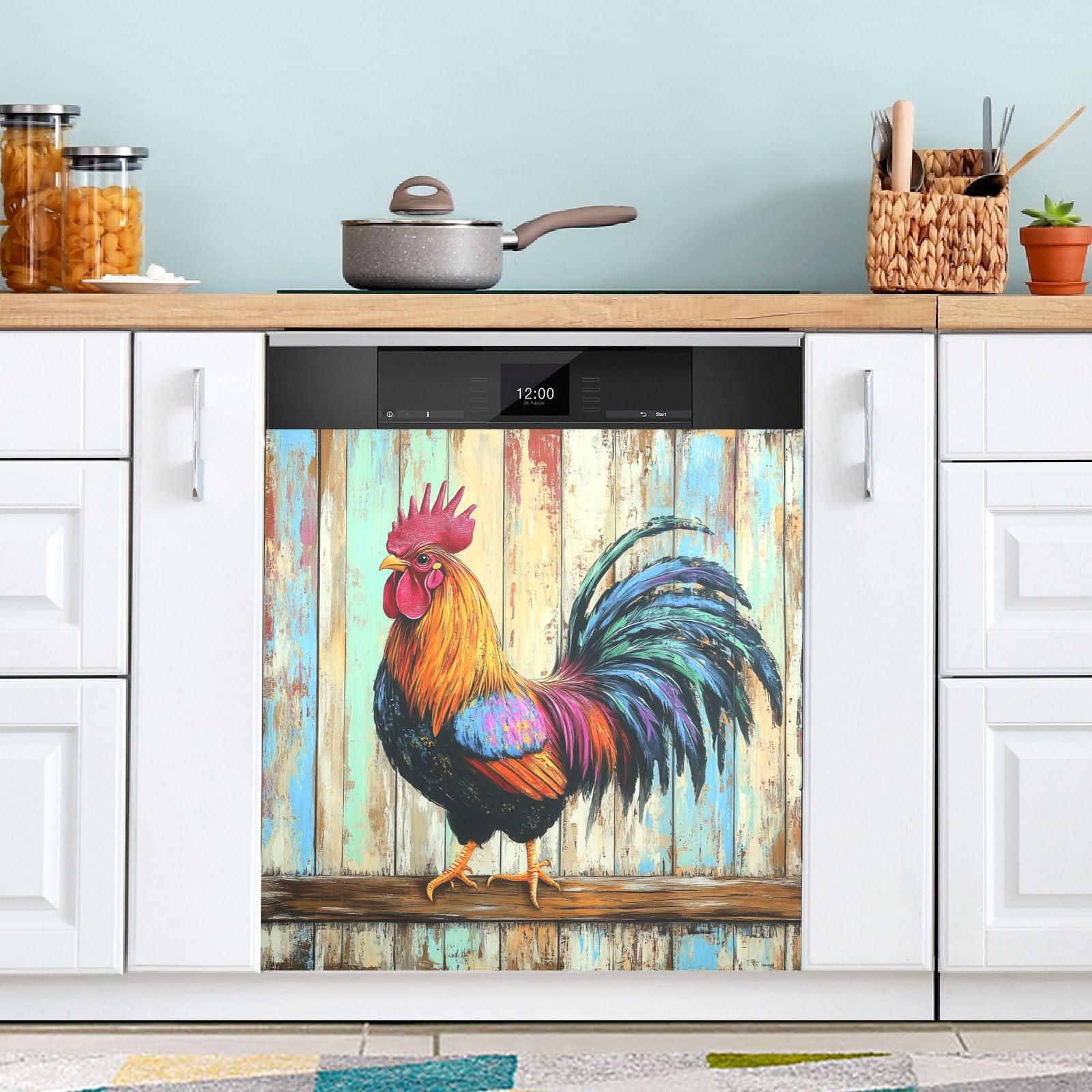Rooster Dishwasher Magnet Cover 23x26 inch,Decorative Dishwasher Magnet Cover Farmhouse Refrigerator Magnetic Sticker Cover