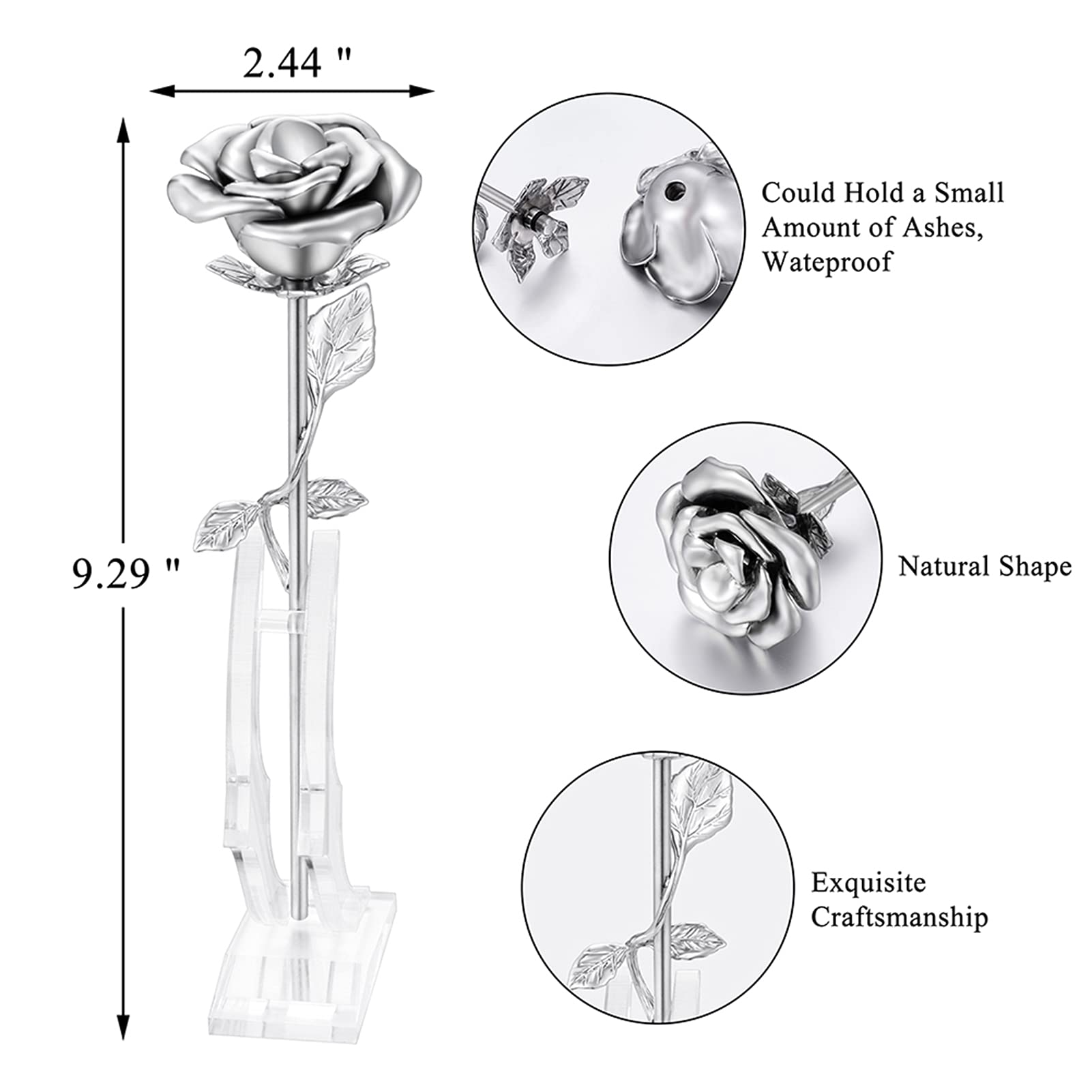 Rose Flower Keepsake Urn for Ashes Sympathy Gift Small Stainless Steel Urn Mini Cremation Urn Keepsake Rose for Sharing Human Ashes-Silver