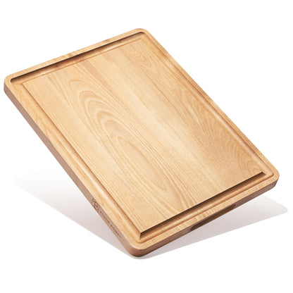 ROSSIE HOME Wood Cutting Board, Heavy-Duty, Pre-Oiled, Reversible Charcuterie Board with Juice Groove, Divided Wells, and Carrying Handles for Kitchen - Blonde Maple - 17x13 Inch - Style No. 60501