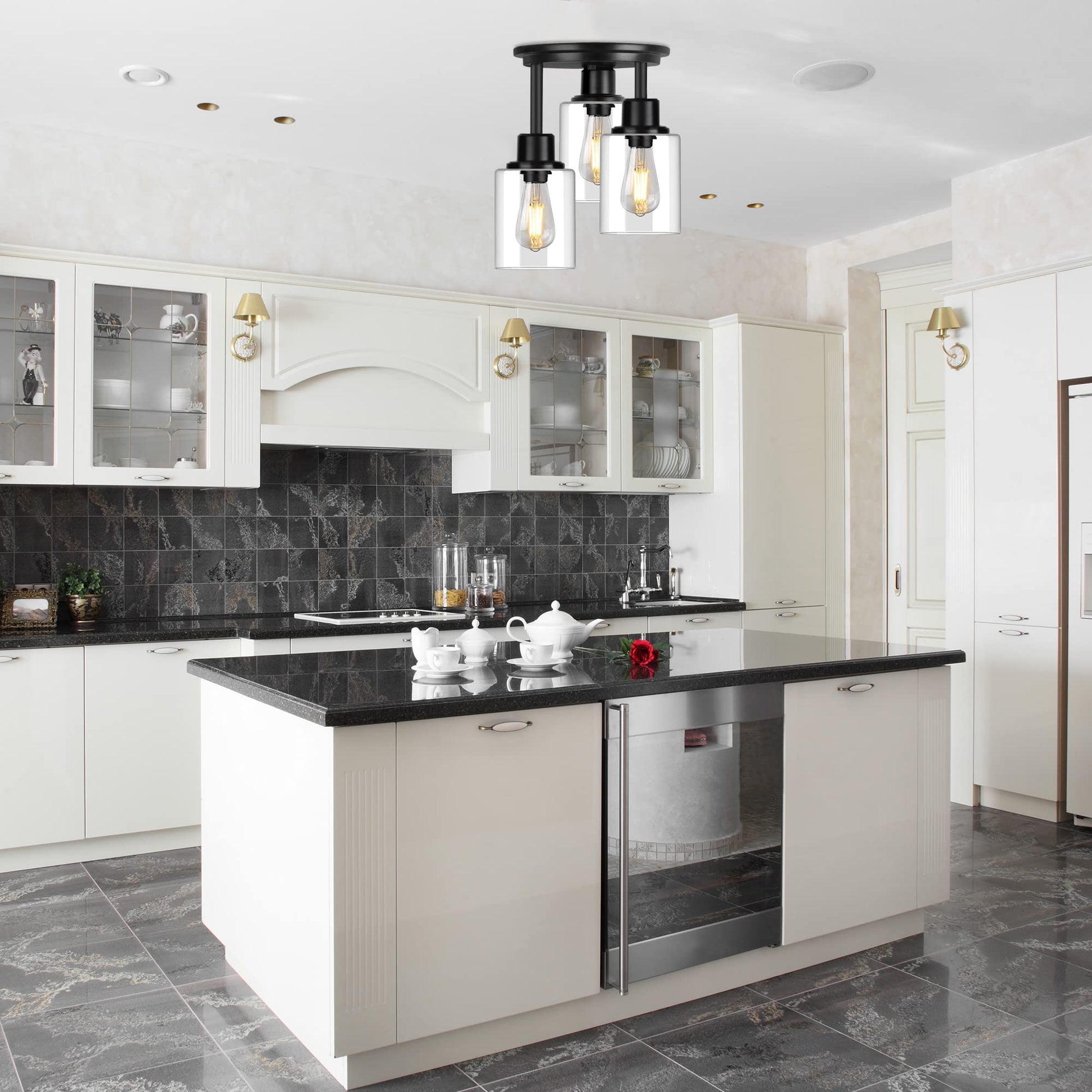 ROTTOGOON Semi Flush Mount Ceiling Light, 3-Light Close to Ceiling Light Fixtures, Matte Black Kitchen Light Fixtures with Clear Glass Shades, Hallway Light Fixtures Ceiling Mount for Foyer Entryway