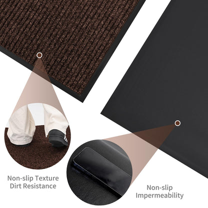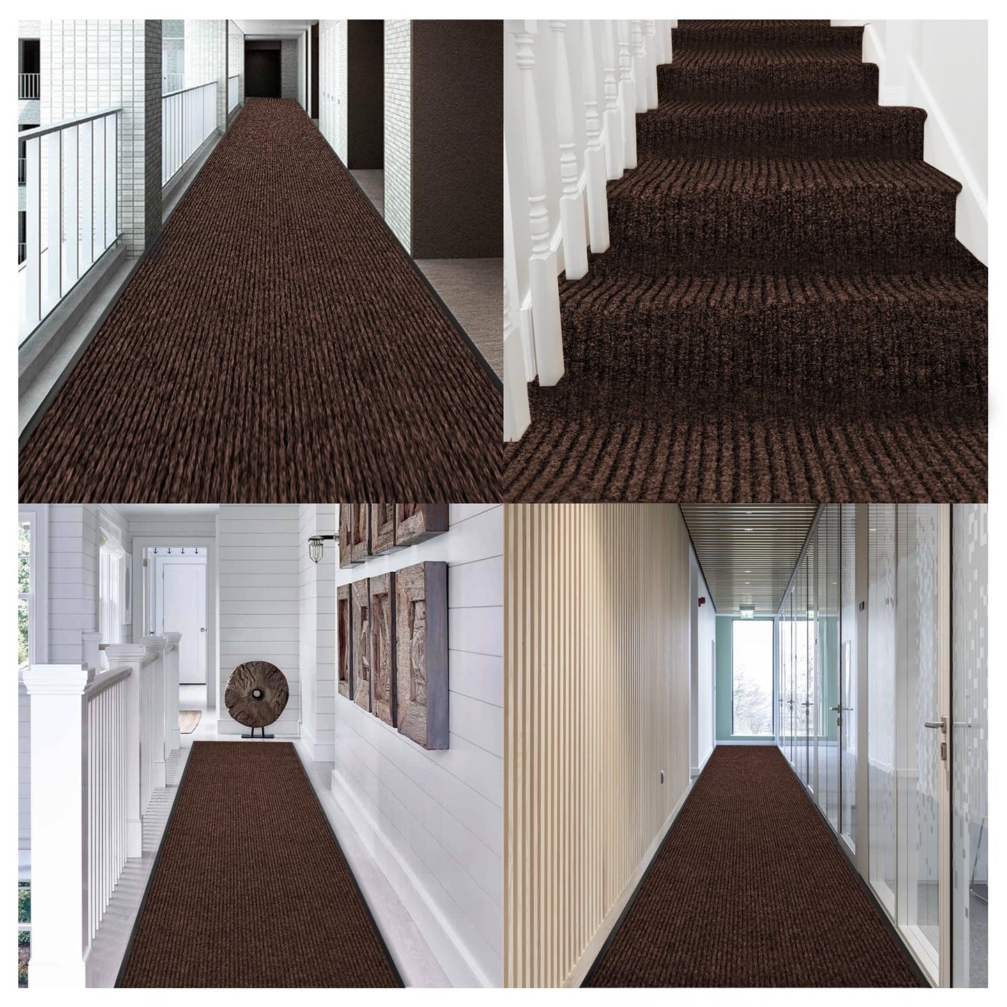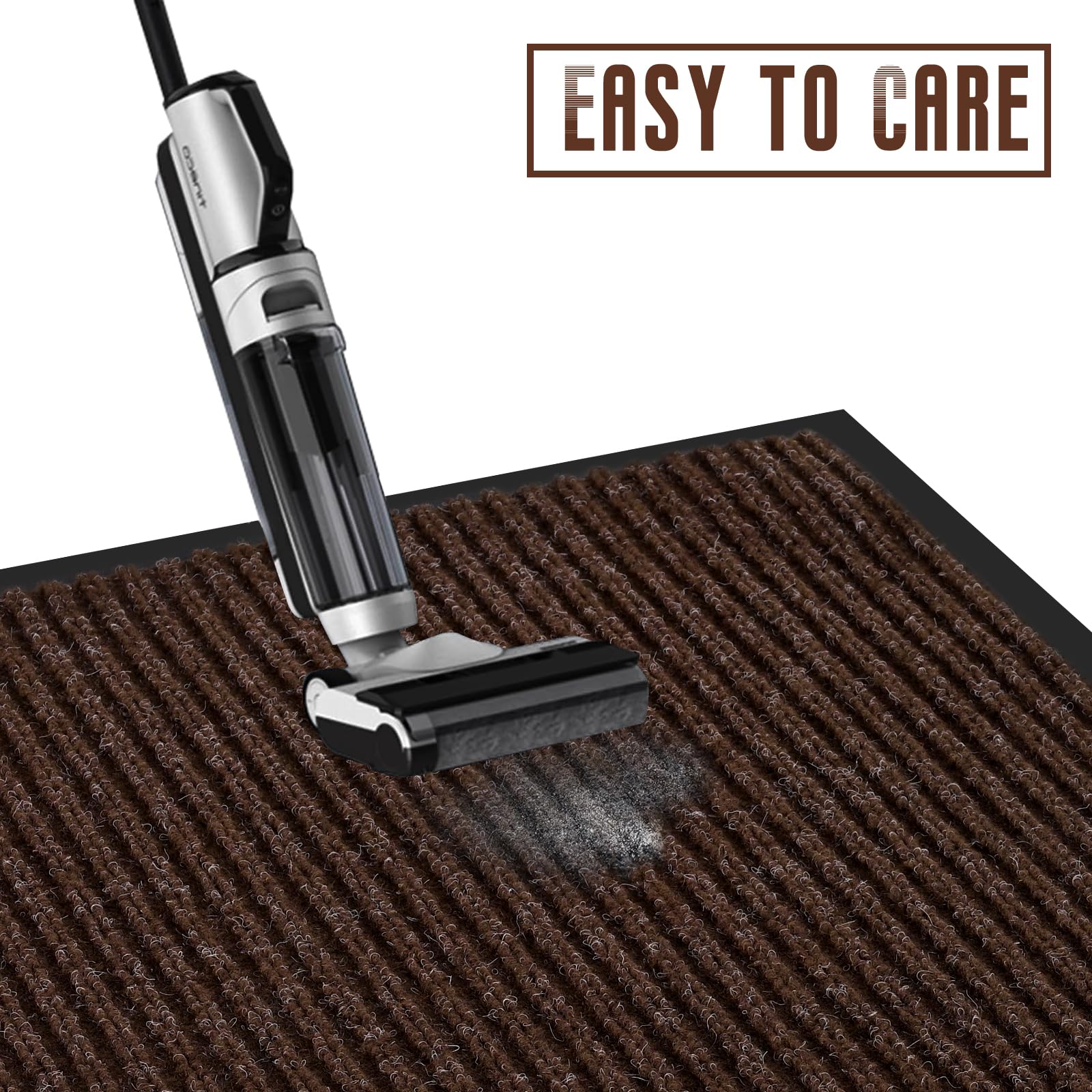 - 【High Quality Stain Resistant Runner Rug】The brown door mats are made of high quality polyester and rubber. The groove design increase friction, easy to scrape sand off the soles. Effectively absorb oil without splashing. It is a great choice for trapping dirt & moisture from shoes & boots in the toughest applications; Protect your floors from snow, salt, rain and other outdoor debris.