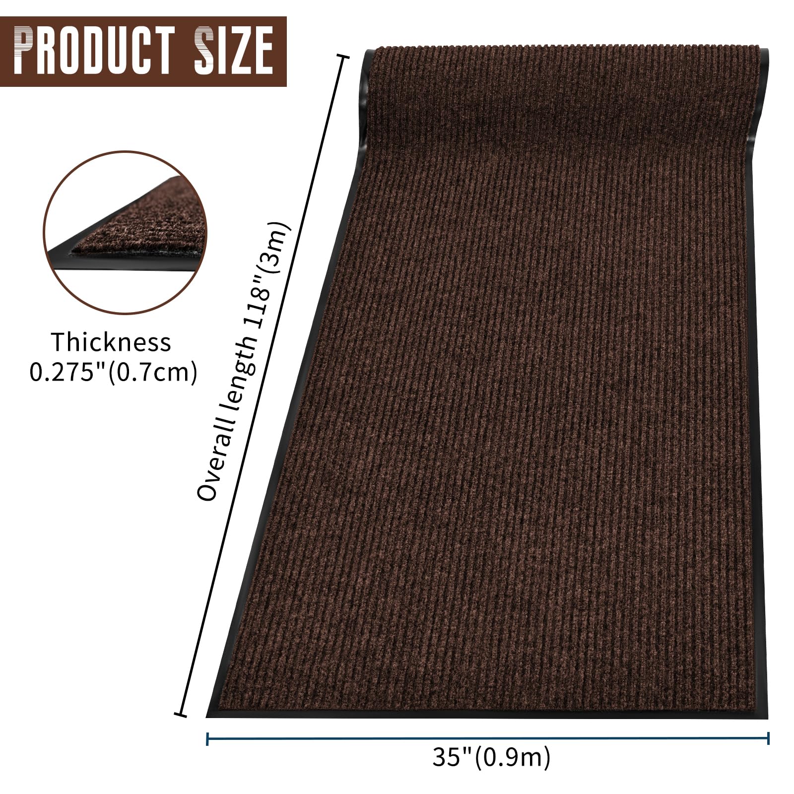 Rubber Door Mat About W3' ×L10' Heavy Duty Large Outdoor Indoor Mat Durable Entrance Doormat Waterproof Rubber Back Rugs for Home Entryway Patio Porch Office Business Areas (Brown)