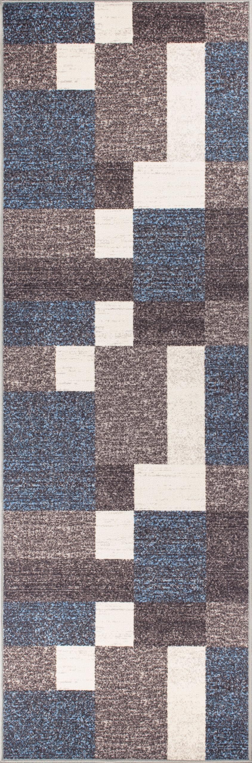 Rugshop Modern Boxes Design Non-Slip (Non-Skid) Runner Rug 2'7" x 8' Blue