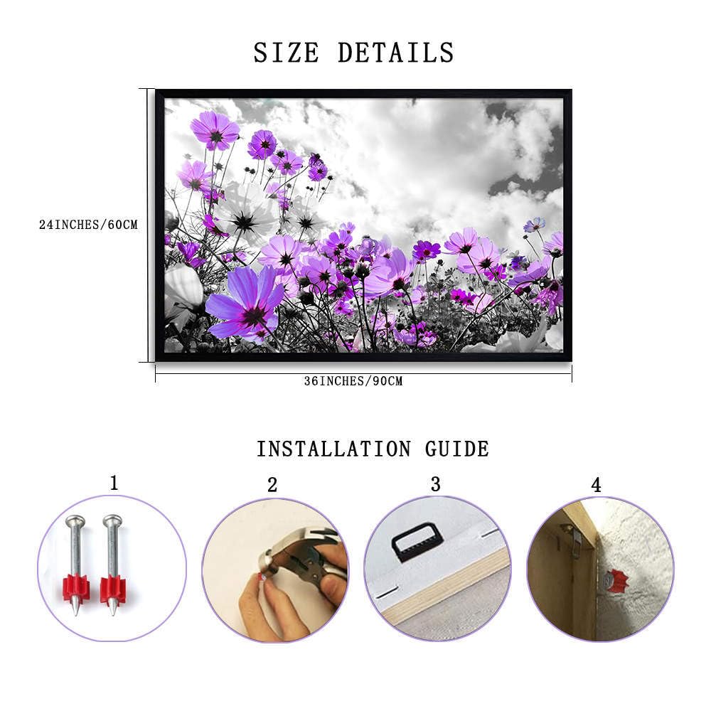 - Easy To Hang -- 2 hanging hooks attached to the purple flower canvas wall art frame for hanging. Easy to hang.