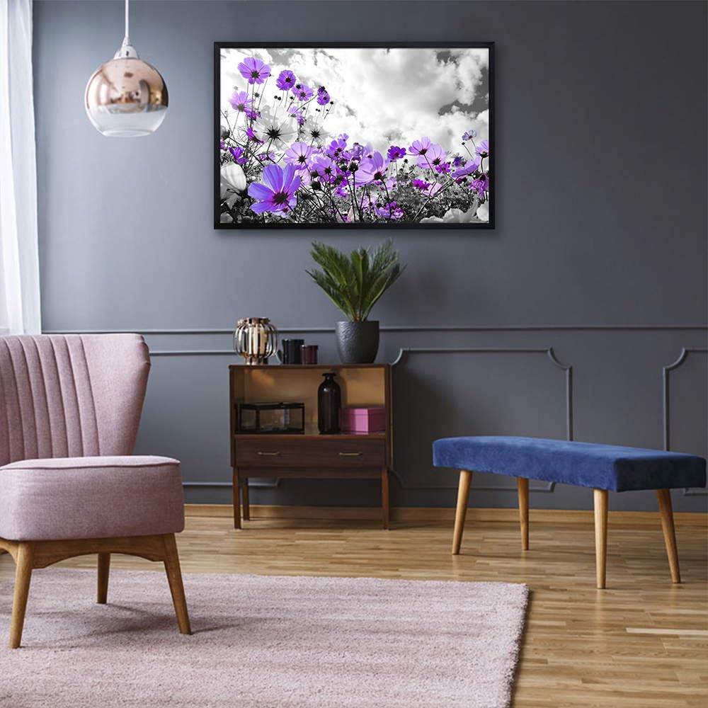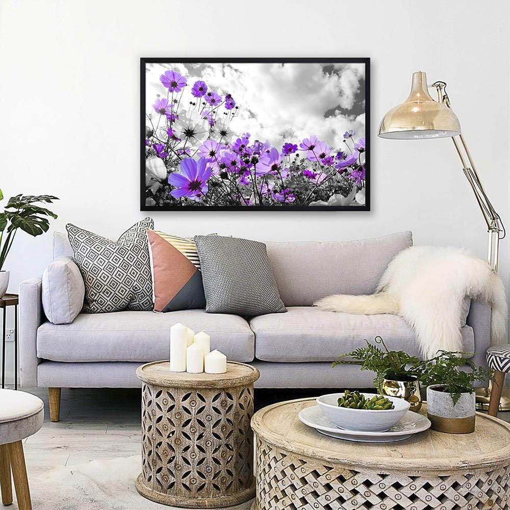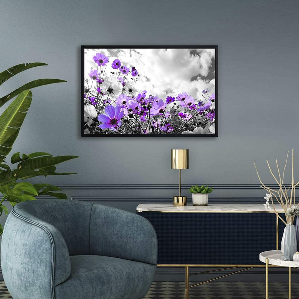 - Great Quality & Well Packaged -- This purple flower pictures framed have vibrant colors and gallery wrapped around a quality wooden inner frame. They're wrapped in plastic and slotted into a perfectly-sized box, well protected & packed for shipping