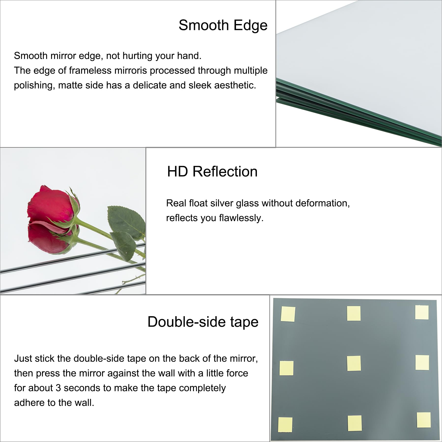 - HIGH-QUALITY - Frameless mirror tiles are made of HD float glass, frosted edge protects well your hands