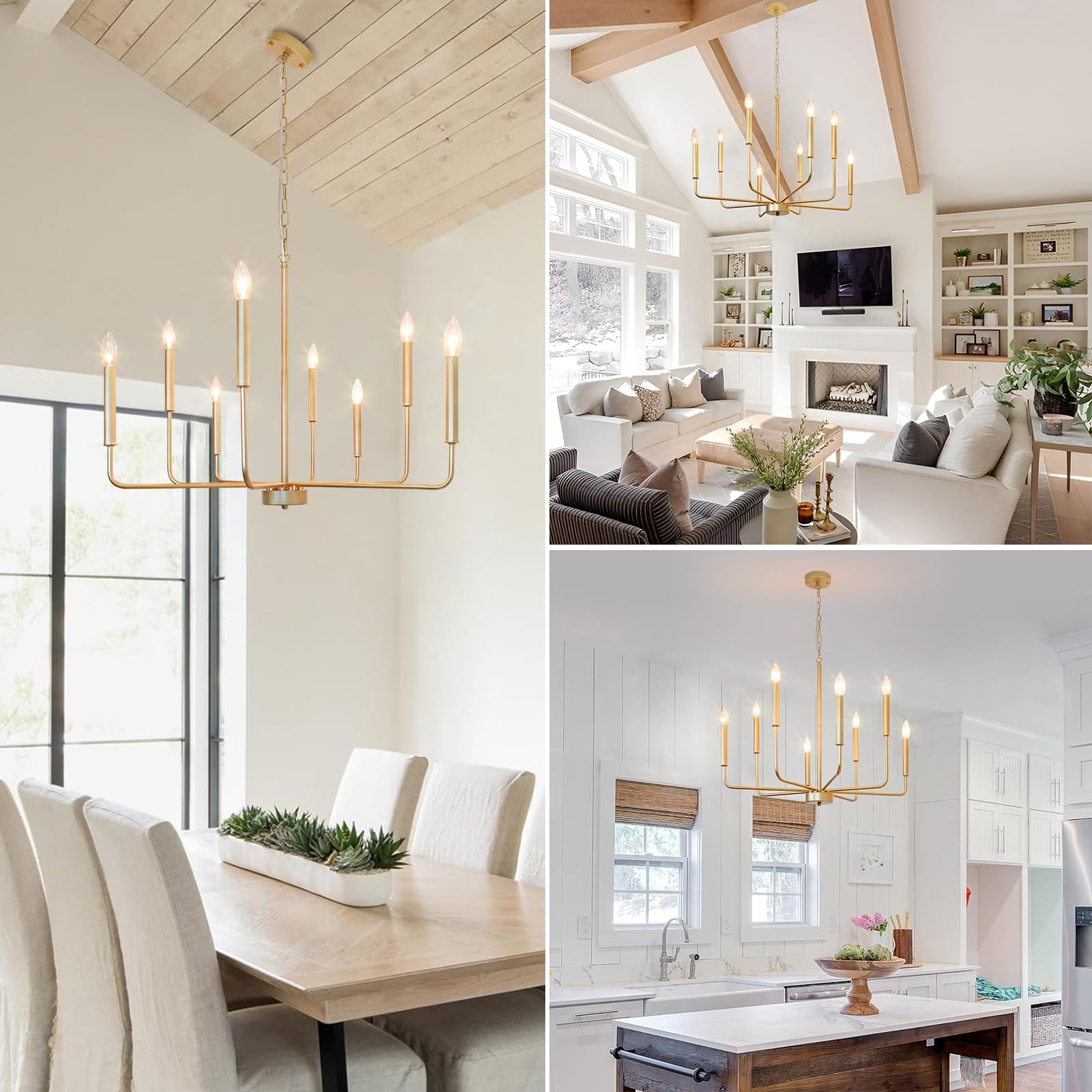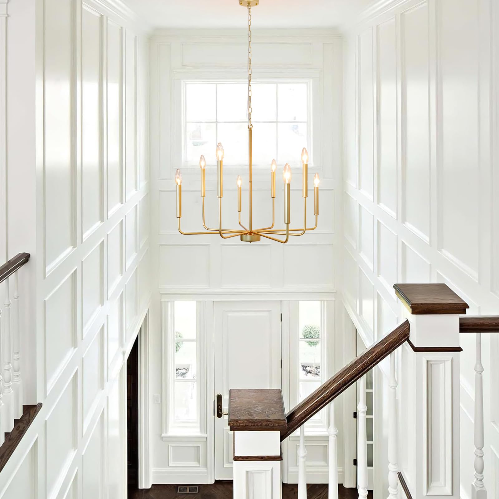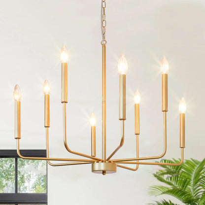 Rviezza Gold Chandeliers, 8-Light Modern Dining Room Light Fixtures, Rustic Candle Hanging Pendant Light for Living Room Entryway Foyer Bedroom Kitchen