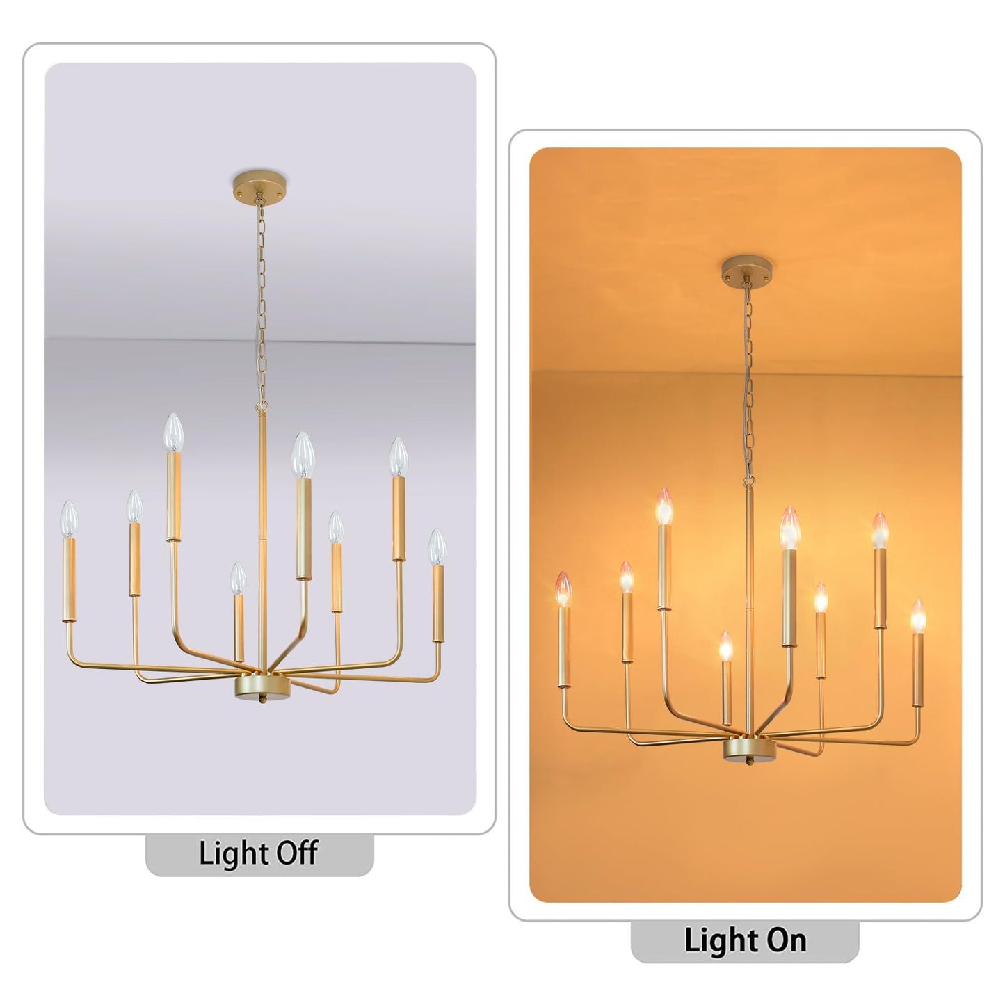 - ใ๐๐จ๐ฅ๐ ๐ ๐๐ซ๐ฆ๐ก๐จ๐ฎ๐ฌ๐ ๐๐ก๐๐ง๐๐๐ฅ๐ข๐๐ซใEmbracing a rustic and industrial style, this gold farmhouse chandelier features different lengthsof arms lights, can highlight the perfect lighting effect, and easy to clean. The appearance of 8 uneven arms look genuine and novel. Classic but not rigid, showcasing a classic and simple aesthetic, . Beyond brightening your abode, this gold chandelier is also a good choice as house warming or festival present.