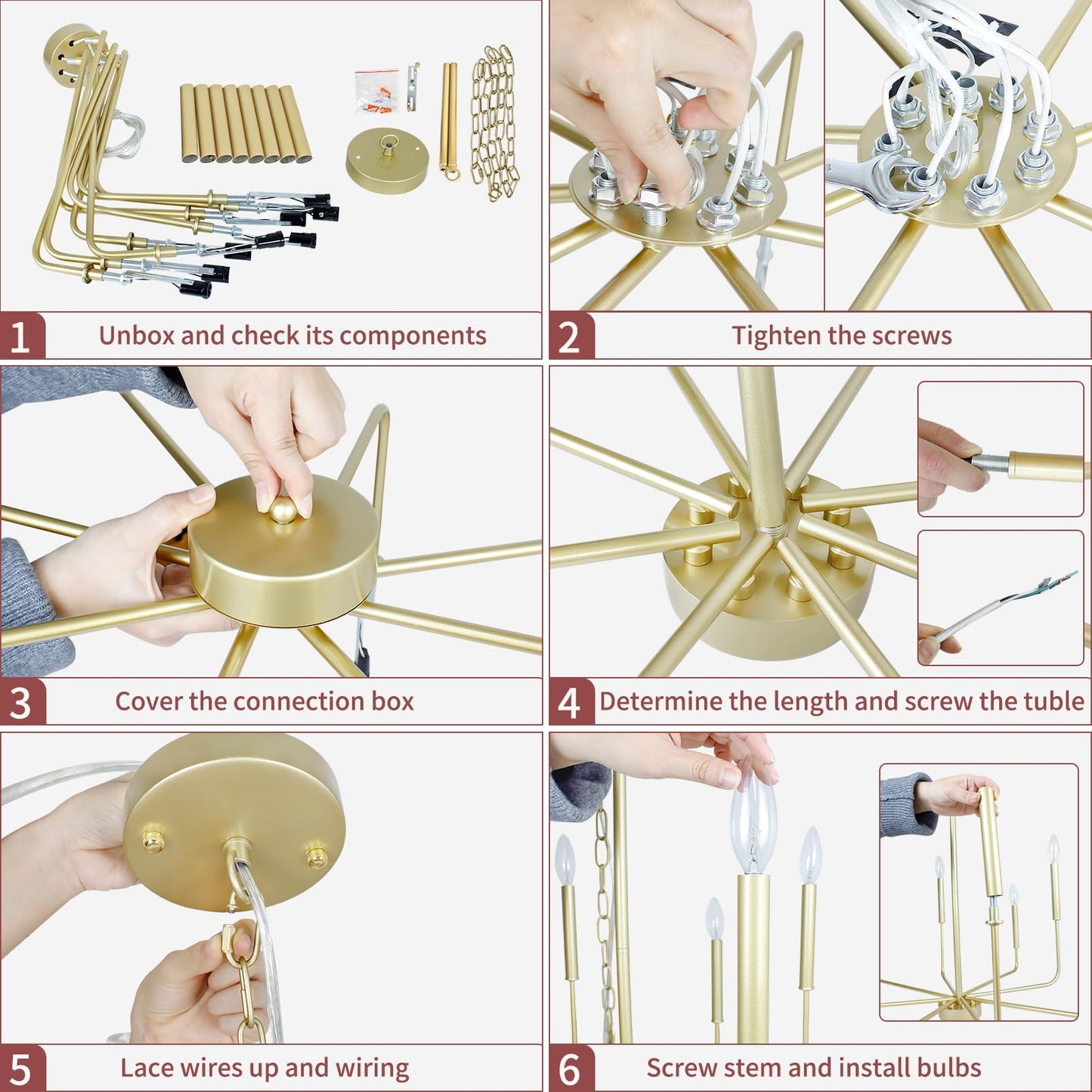 - ใ๐๐๐ฌ๐ฒ ๐ญ๐จ ๐๐ง๐ฌ๐ญ๐๐ฅ๐ฅใAssembly required, but easy to install. All arms are pre-wired and pre-threaded, and all the necessary hardware is included, assembly becomes a breeze! Besides, Our product page has Installation pictures, you will save your time and be happy to enjoy your new decoration). Requires 8รE12 candelabra bulbs maximum 60W. It can be used with compatible dimmer switches (๐๐ฎ๐ฅ๐๐ฌ/๐๐ฐ๐ข๐ญ๐๐ก ๐๐๐ ๐๐ง๐๐ฅ๐ฎ๐๐๐)