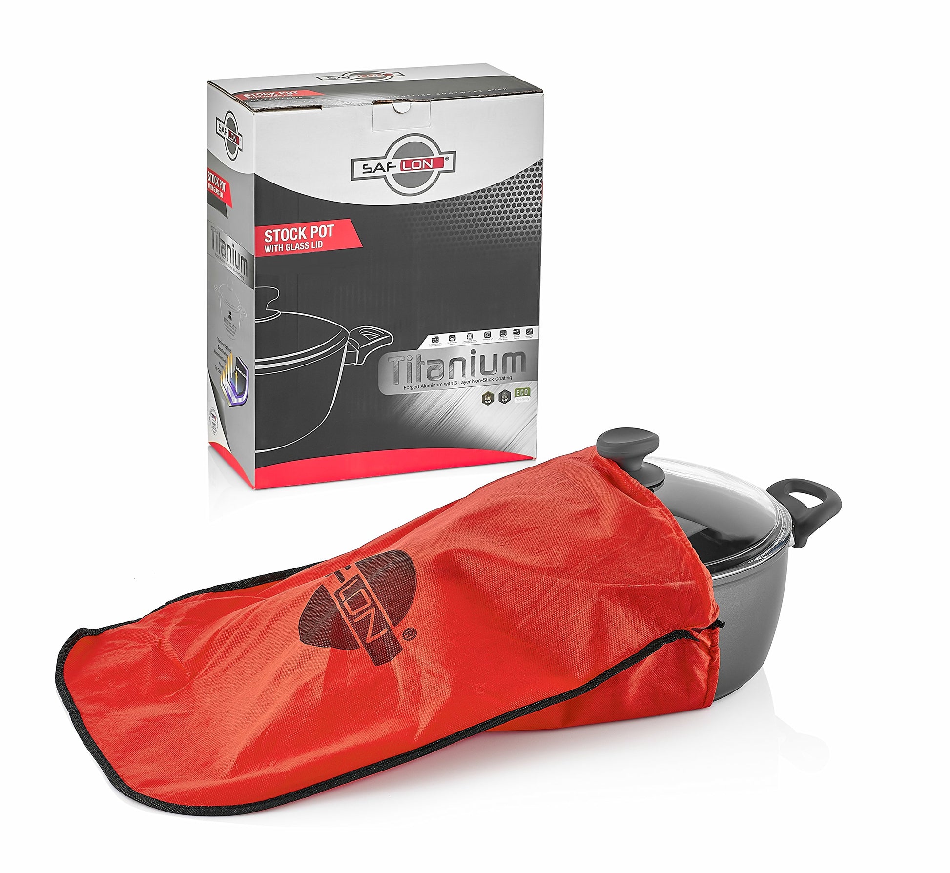 Saflon Titanium Nonstick 6-Quart Stock Pot with Tempered Glass Lid, 4mm Forged Aluminum with PFOA Free Coating from England
