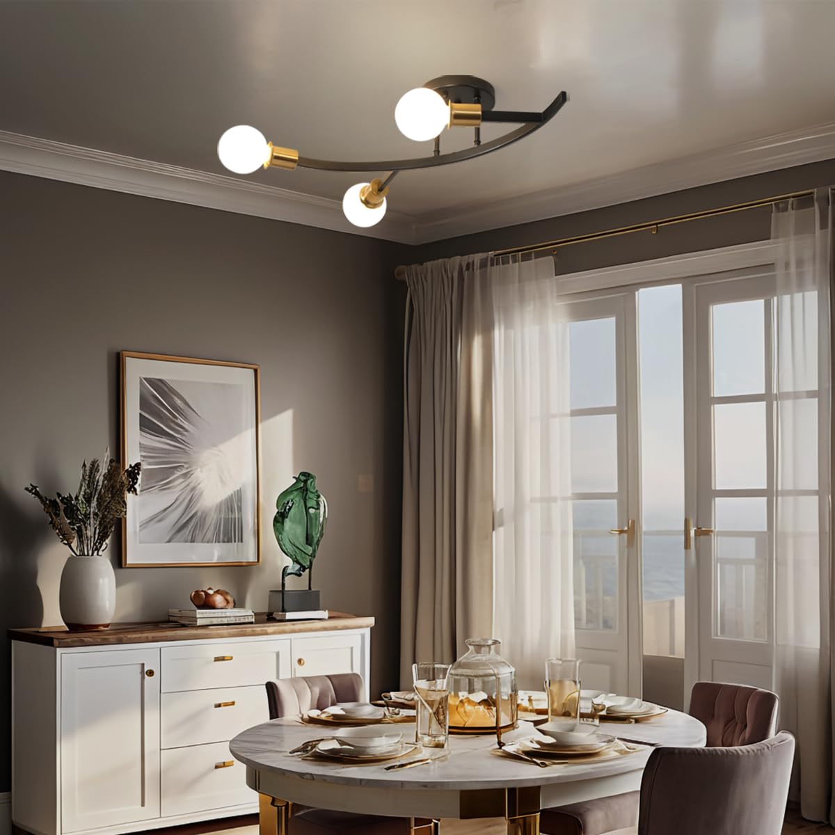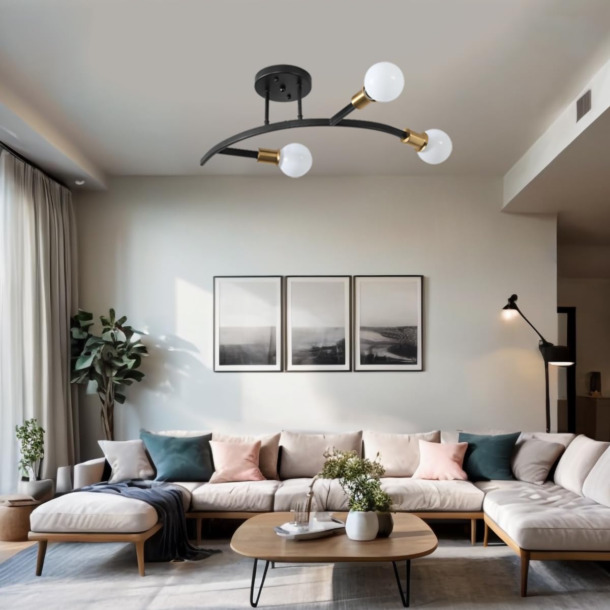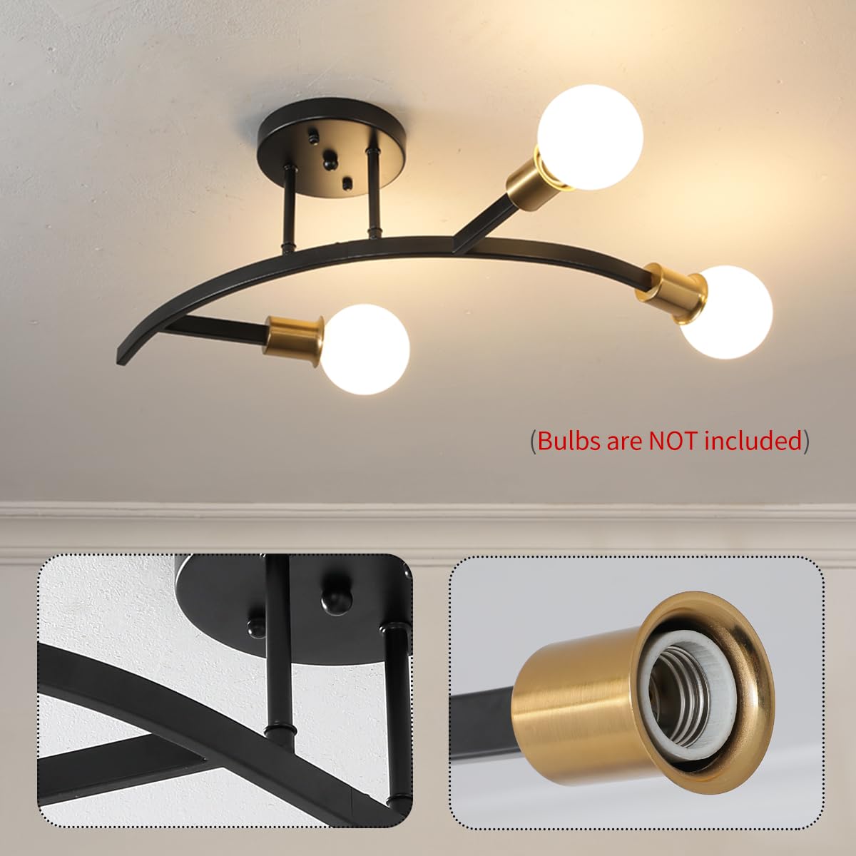 - Wide Application:This black and gold semi flush mount ceiling light with a simple style is a perfect living room light fixture,as well as for hallways,bedrooms,dining rooms,kitchen islands,and offices.It is a perfect choice