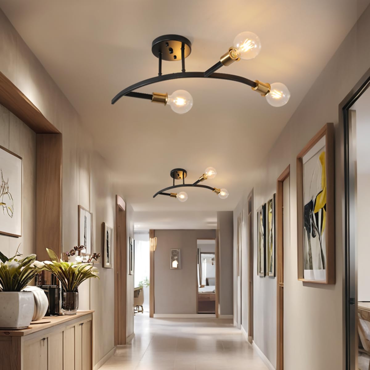 - Easy to Assemble and Install:This Modern Sputnik Semi Flush Mount hallway light fixture consists of two branches and a canopy,with pre-connected internal wiring.Detailed installation instructions are included in the packaging to assist with a smooth installation process