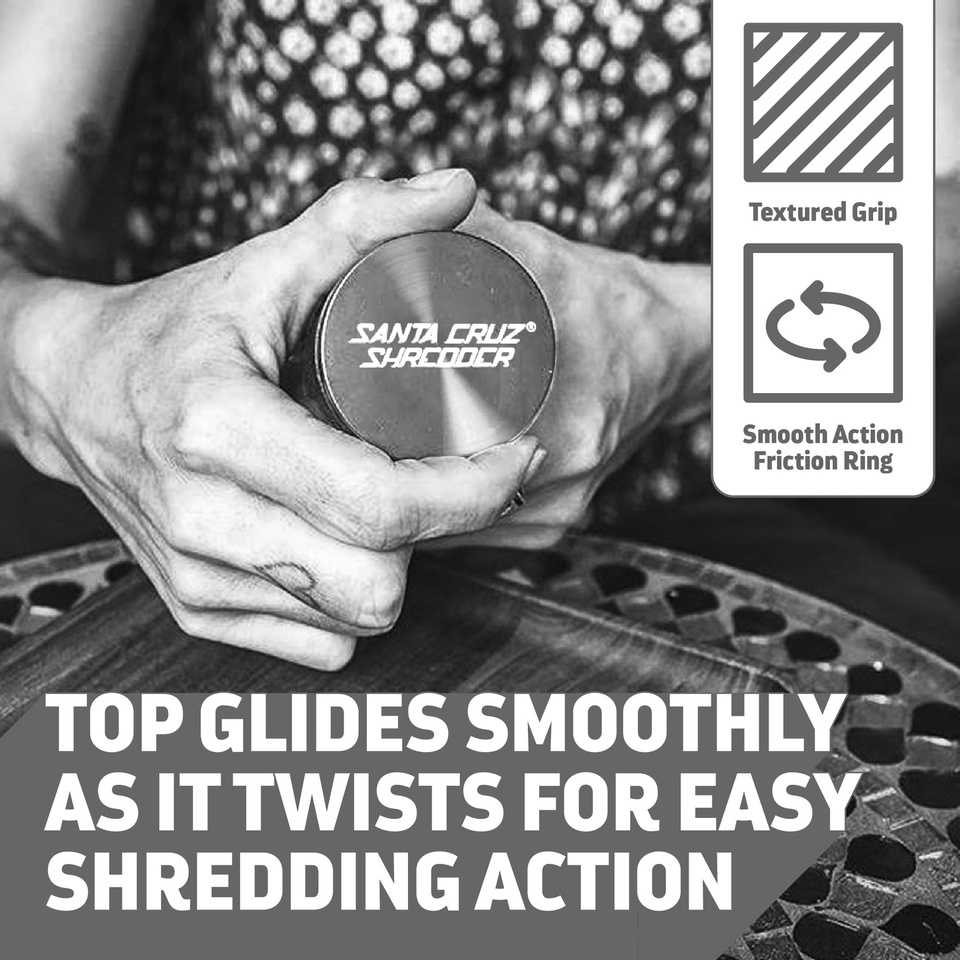 Santa Cruz Shredder Metal Herb Grinder Knurled Top for Stronger Grip 3 Piece Small 1.7" (Grey)