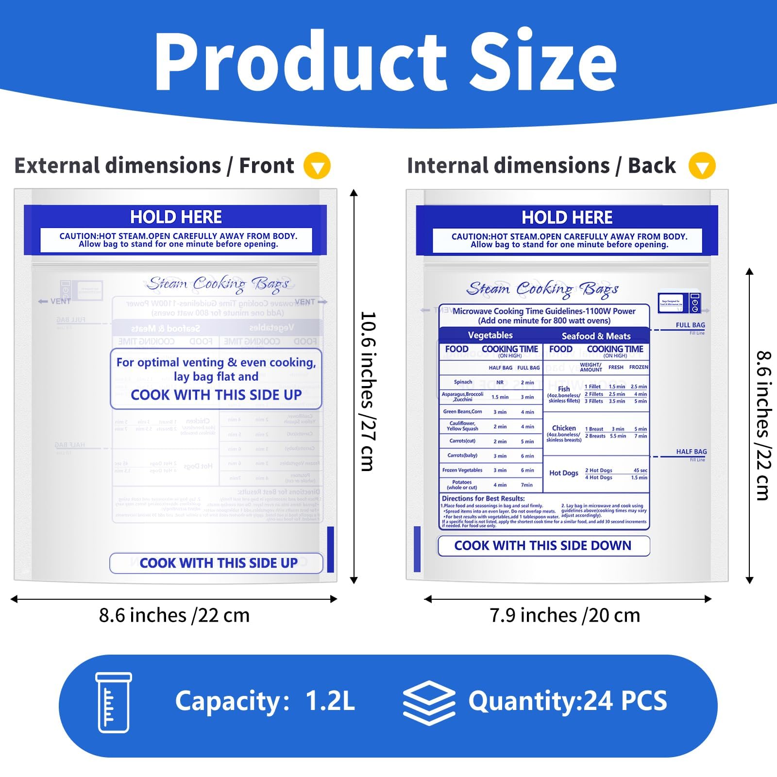 - Bulk Quantity Advantage: you can get 24 pcs microwave steam bags, we offer a variety of quantity options to fully meet your daily cooking needs, allowing you to enjoy the fun of quickly cooking vegetables and other ingredients