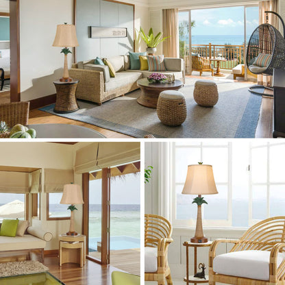 - Looking to give your home a refreshing touch:Bring a taste of the tropics to your home, along with a warm glow to light up any room you put this table lamp. Designed with a palm tree in mind, displaying a leafy crown and matching finial to draw the eye.You'll be daydreaming of your next vacation every time you look at it.