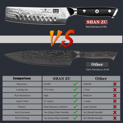- A total of 67 Layers Steel, Long-Lasting Use: SHAN ZU Damascus chef knife forged by 67 layer sheets of steel greatly enhances the characteristics of wear-resistant, rust prevention, and toughness, it would be a long-lasting use utility knife