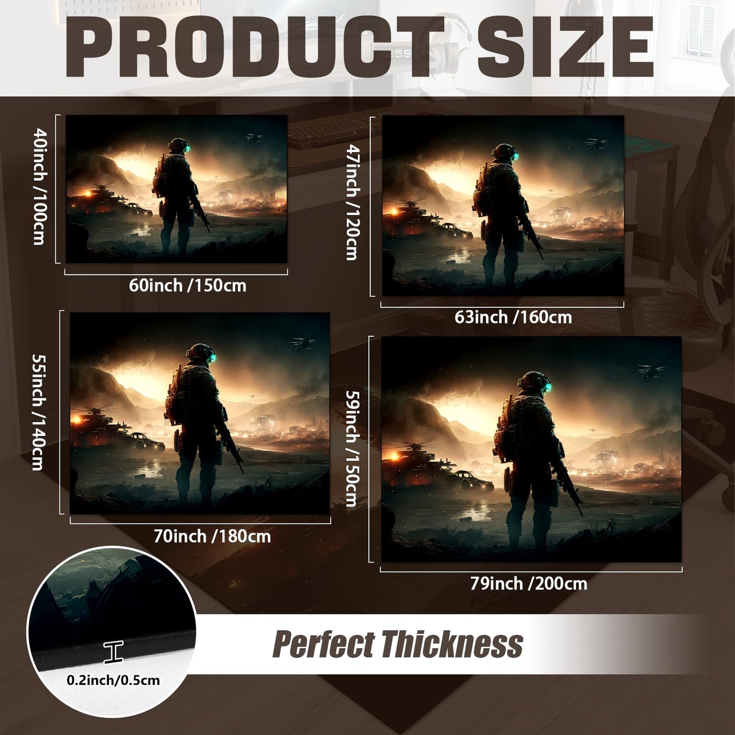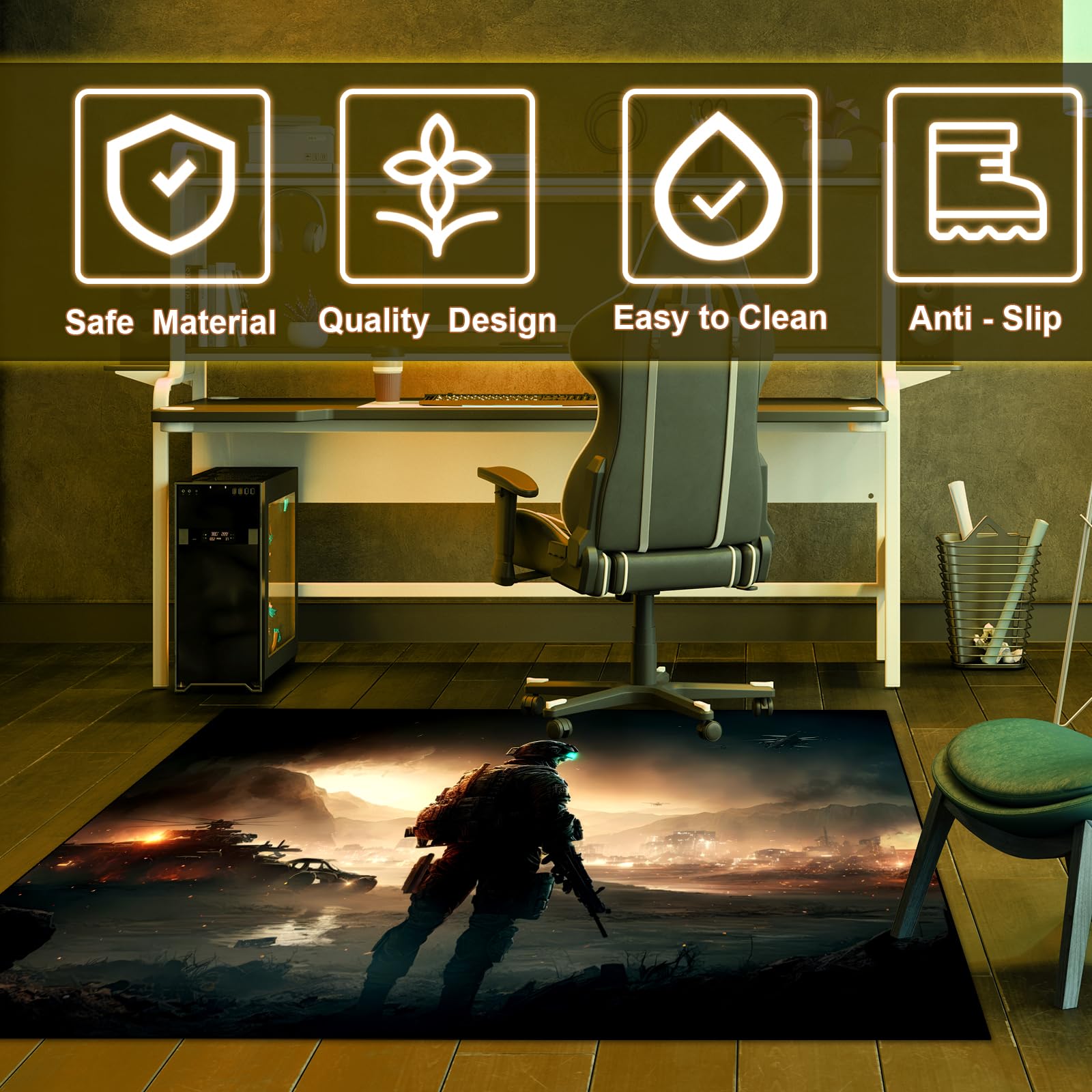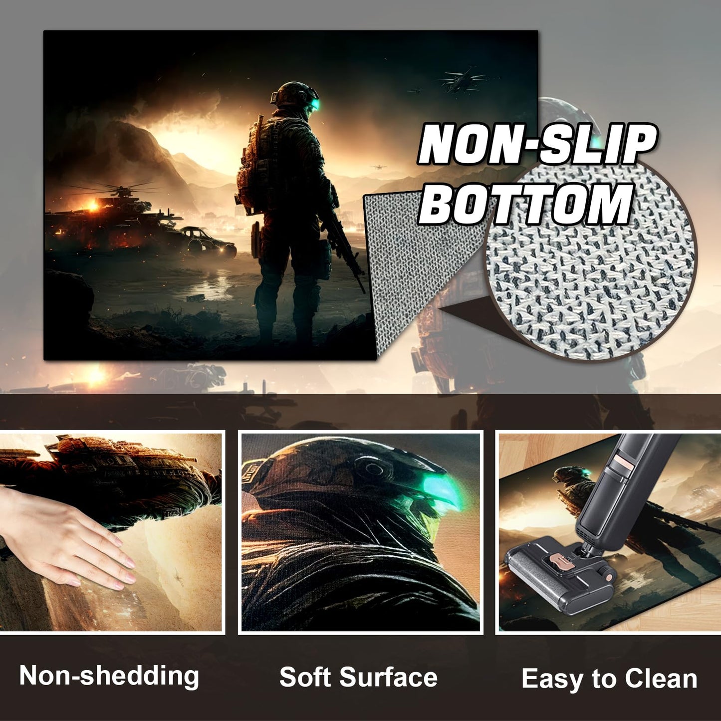 Shooting Game Rug Teen Boys Carpet with Battle Game Element Decoration Mat, War Game Rugs for Boy’s Bedroom Living Room Playroom, Non-Slip Children Gaming Area Rugs (Single, 79" x 59")