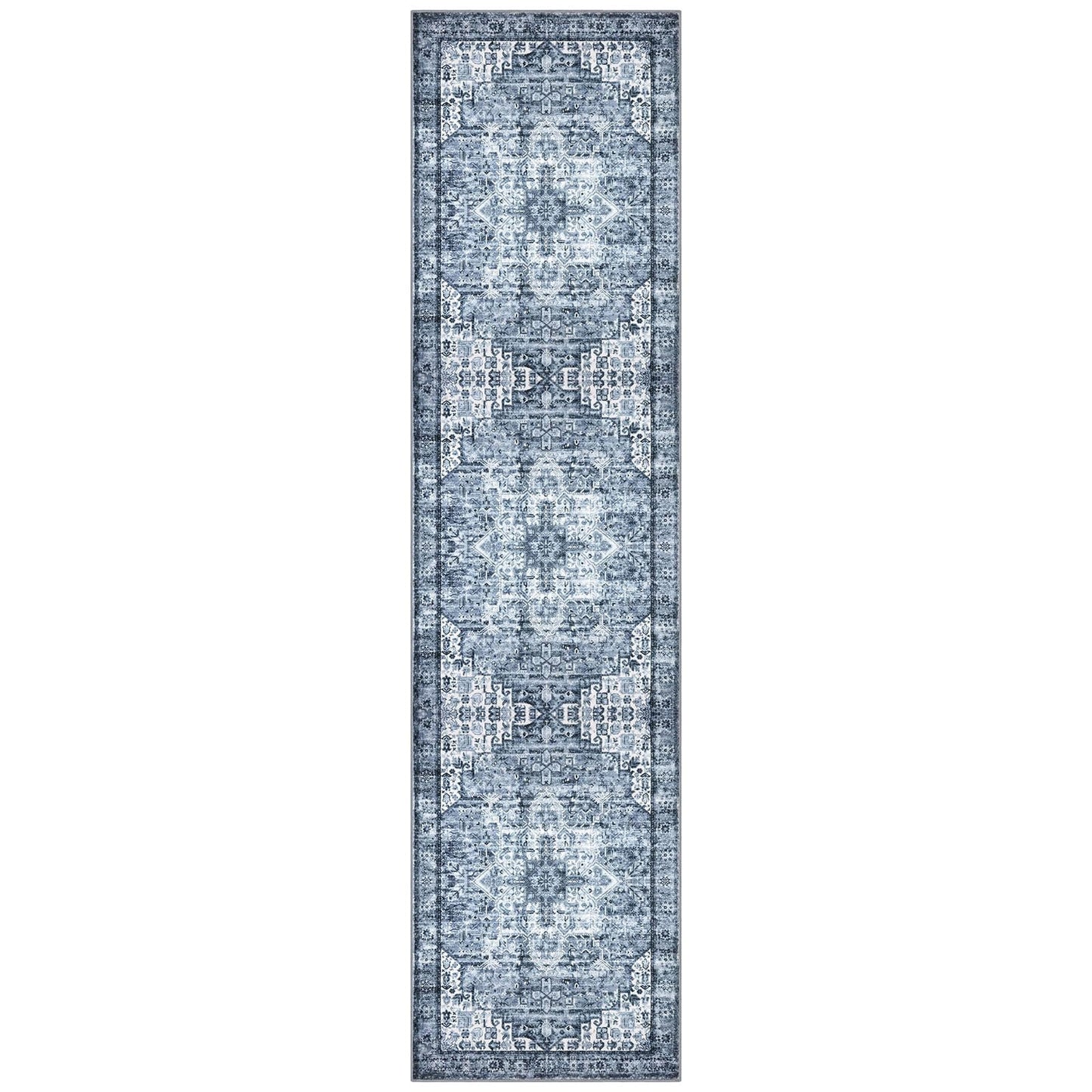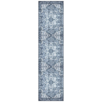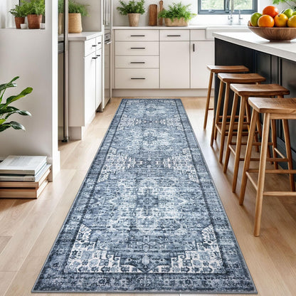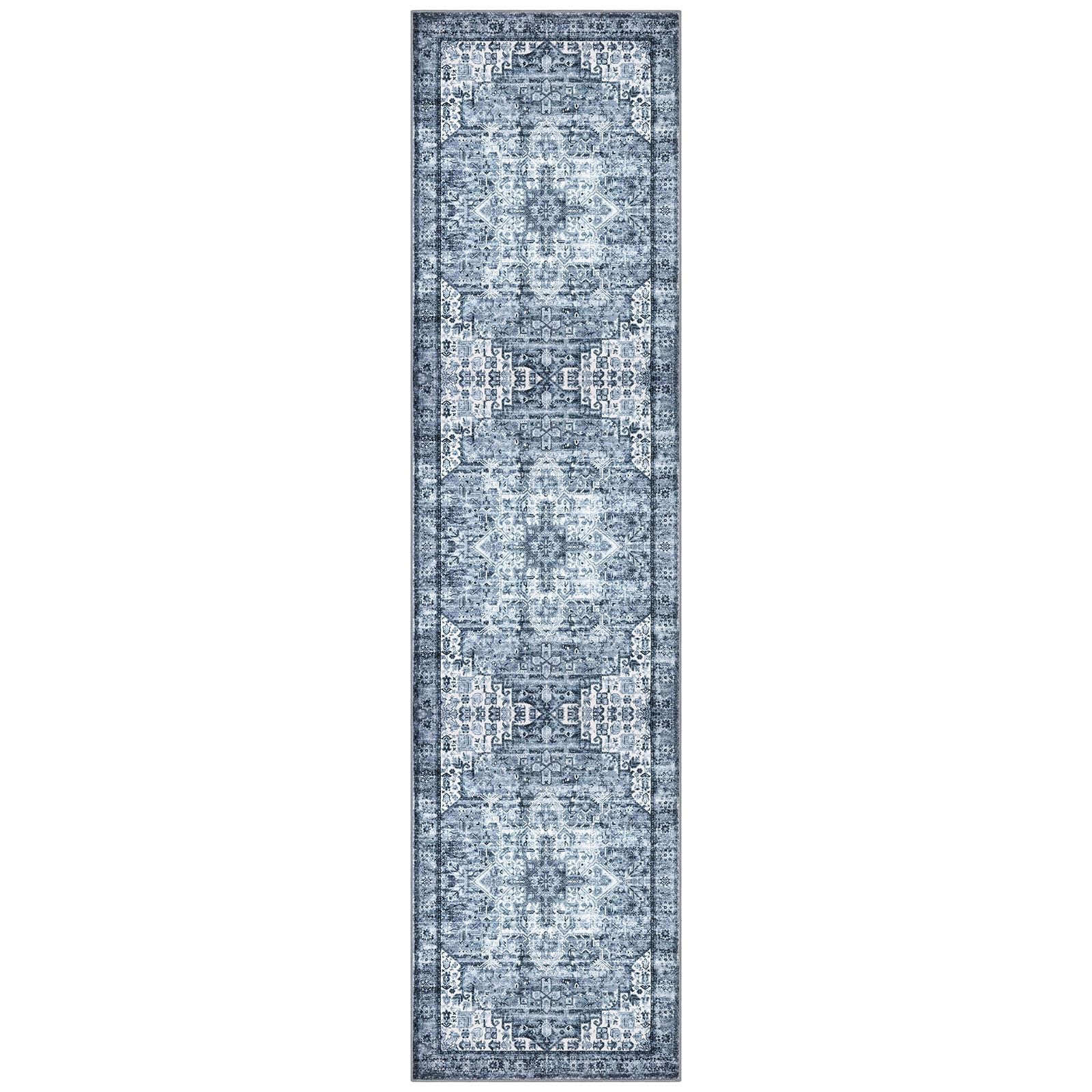 SIILOOM 3x10 Blue Washable Rug for Entrance, Soft Printed Area Rug, Non-Slip Kitchen Rugs, Low-Pile Medallion Indoor Door Mat, Small Farmhouse Carpet for Entryway Kitchen Foyer Bedside