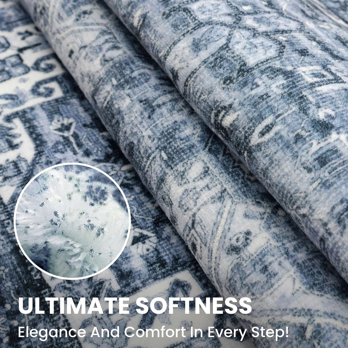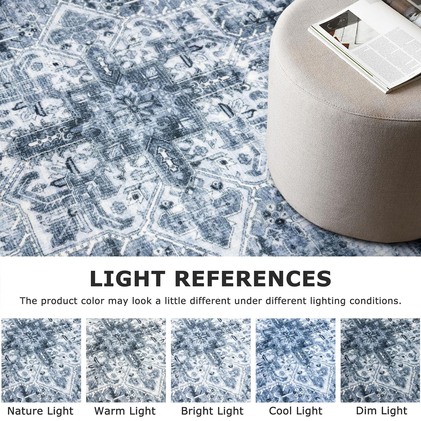 - Vintage Design: Showcasing a Blue White vintage medallion pattern, this rug add an exquisite retro touch to your home décor; the striking sheen enhances the vintage aesthetic, offering a beautifully unique decorative effect under varying light conditions
