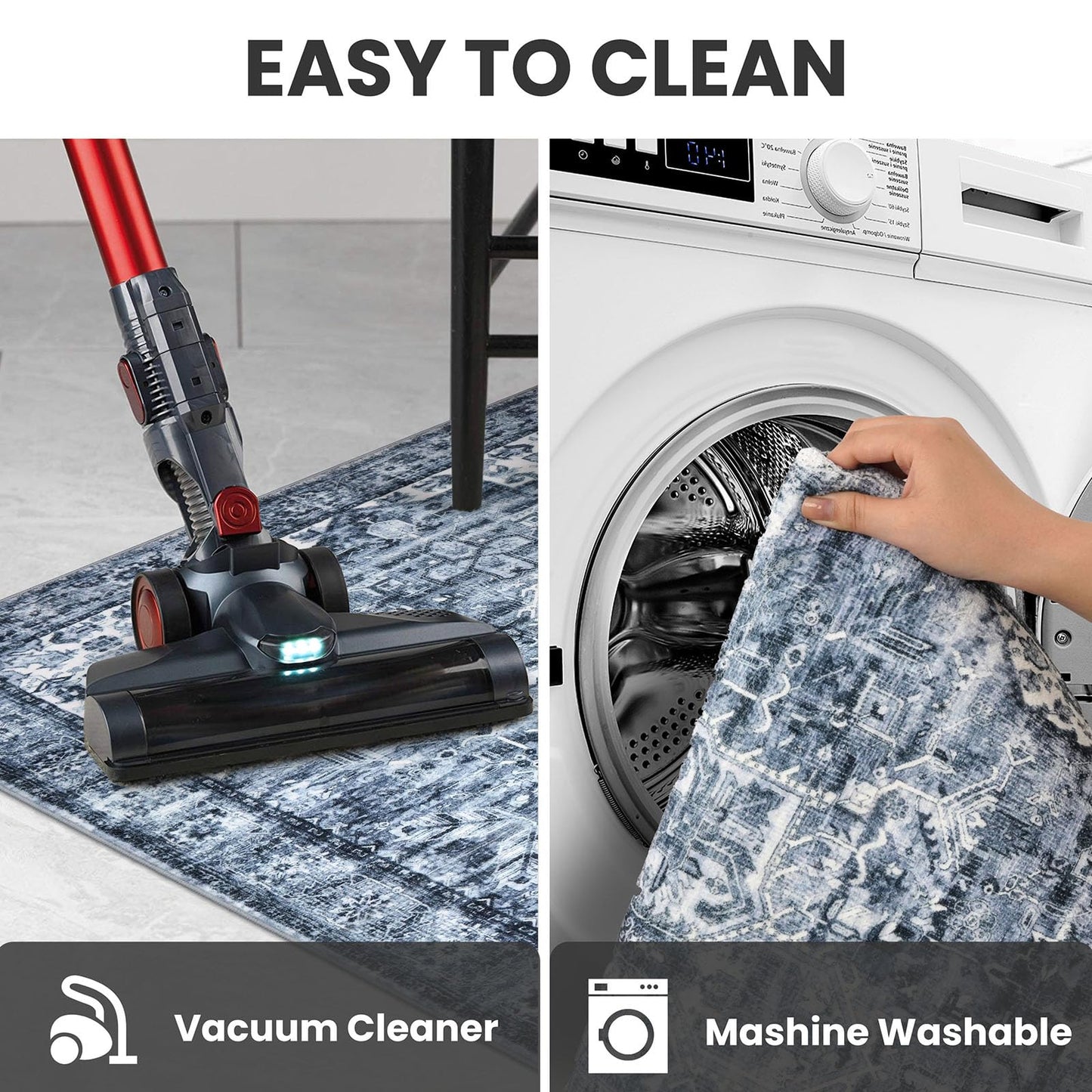 - Simple Care and Machine Washable: Quick sweeping or wiping handles daily care; use a low-speed or robotic vacuum to prevent the throw rugs movement. For deep cleaning, machine wash in cold water; avoid bleach to preserve the boho rug’s vibrant colors