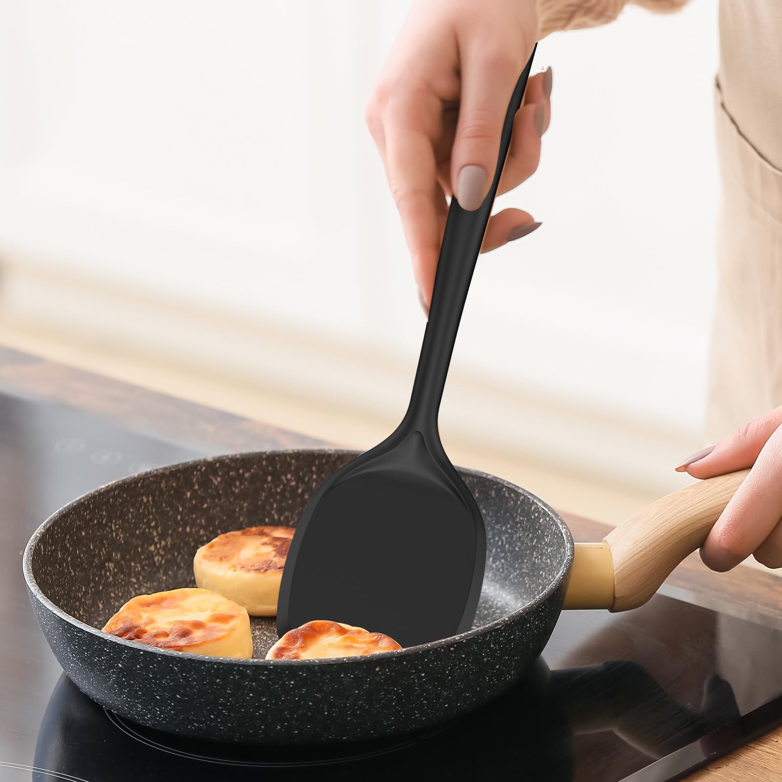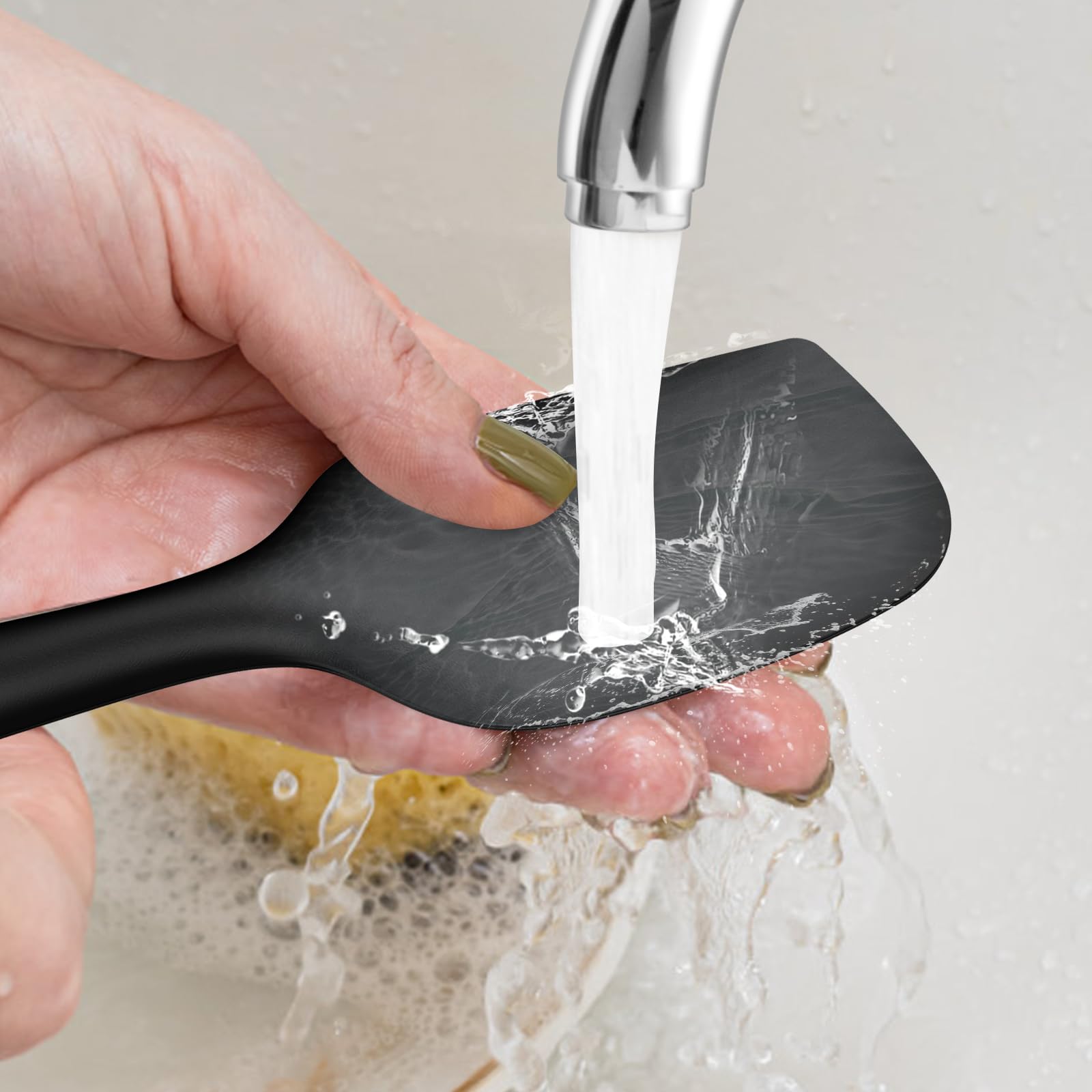 - STAINLESS STEEL CORE & NO GAPS: Each utensil features a stainless-steel core for durability and resistance to deformation. The soft silicone outer layer protects your pans, while the anti-slip texture ensures a comfortable grip. The seamless design eliminates cleaning issues from welding seams
