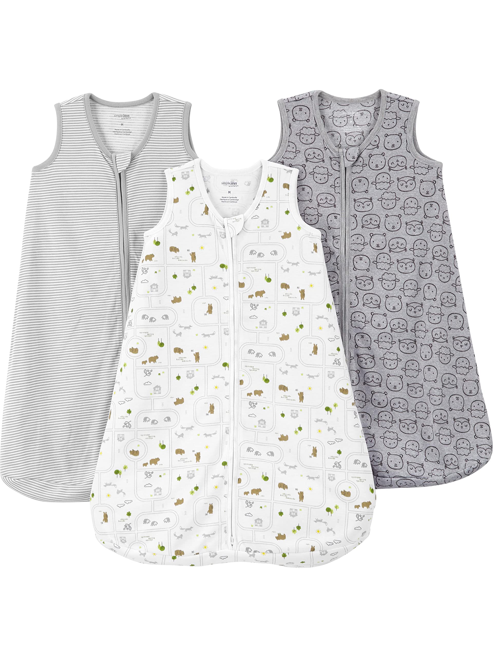 Simple Joys by Carter's Baby 3-Pack Cotton Wearable Blankets, Animal/Stripe, Large