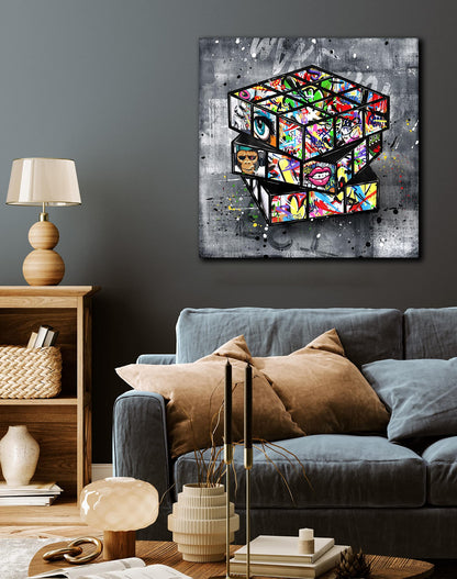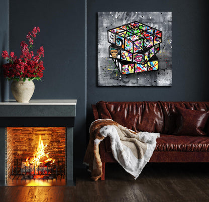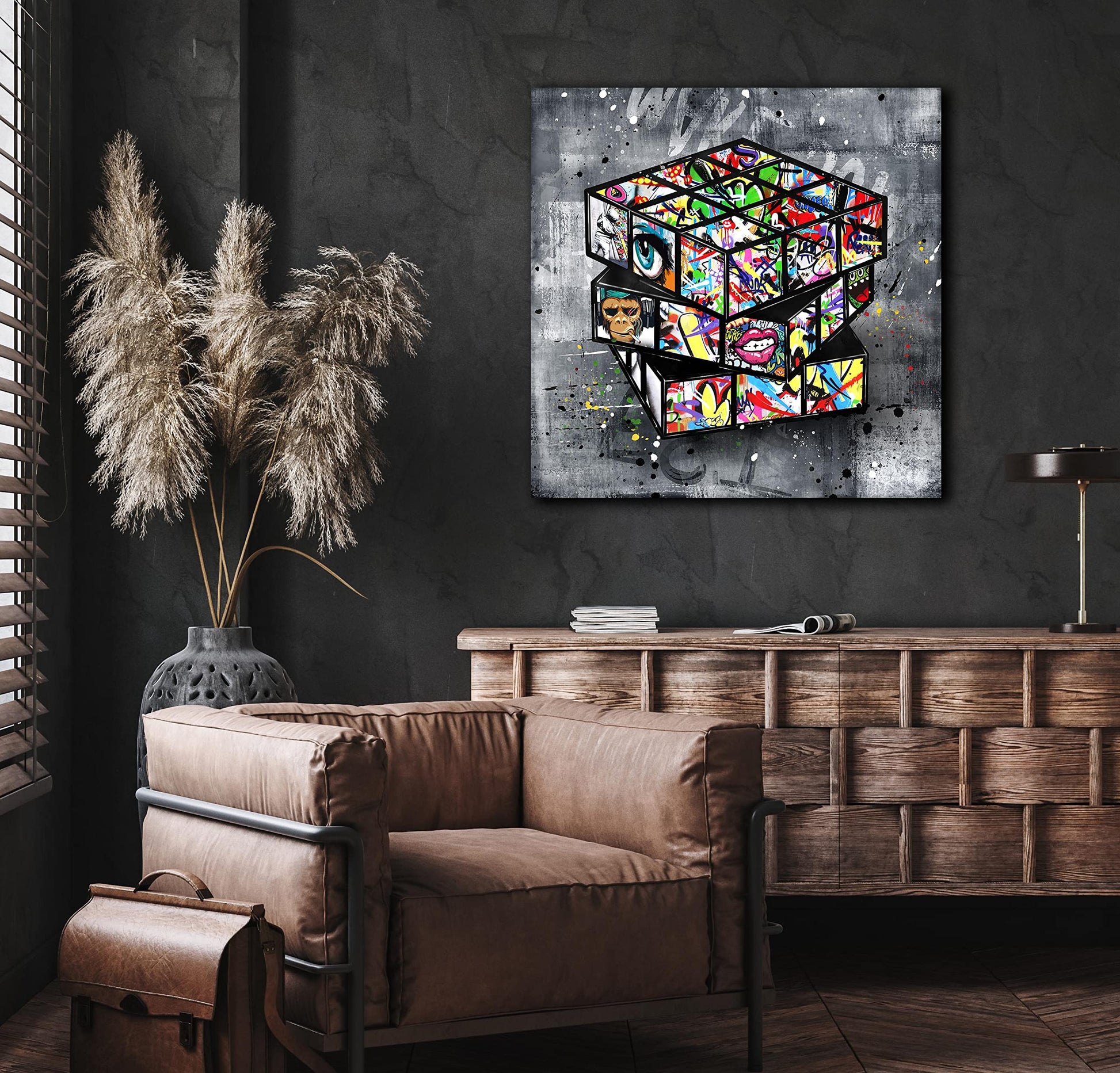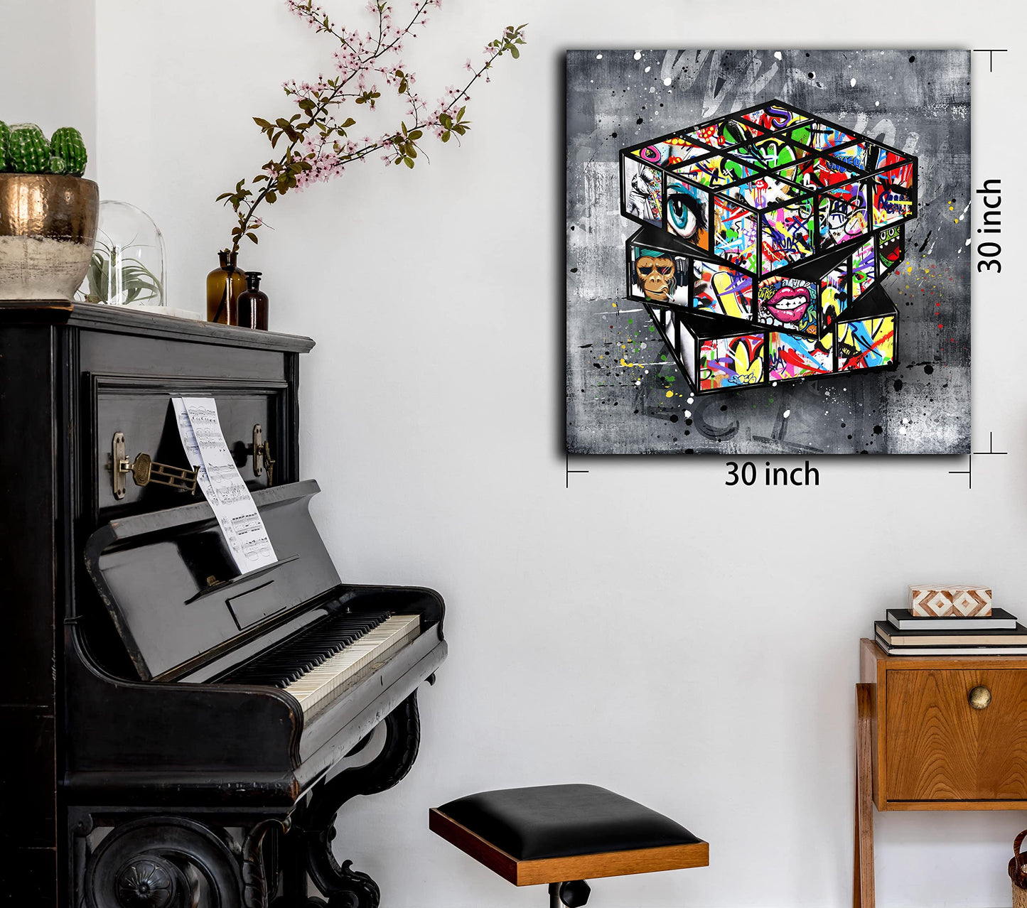 SIXTTART Graffiti Wall-Art - Banksy Canvas Wall Art For Living Room Large Size - Abstract Art Wall Decor - Street Pop Art Modern Art Wall Decor 30" W x 30" H Stretched And Framed Ready To Hang