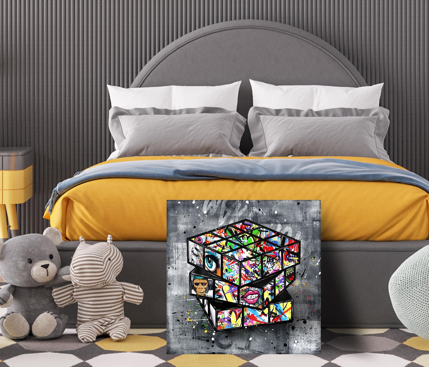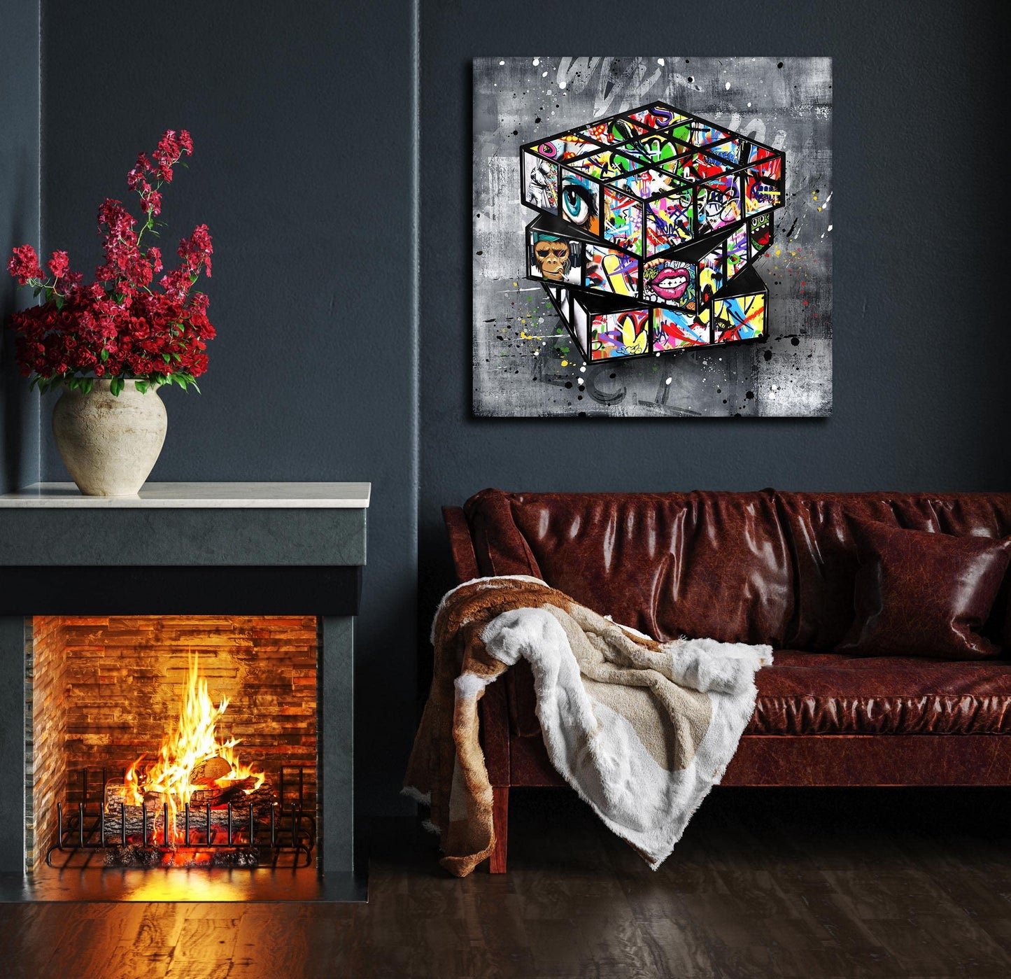 - 【CANVAS WALL ART SIZE】 Size is 30"x30" Graffiti wall art banksy canvas wall art abstract street art
