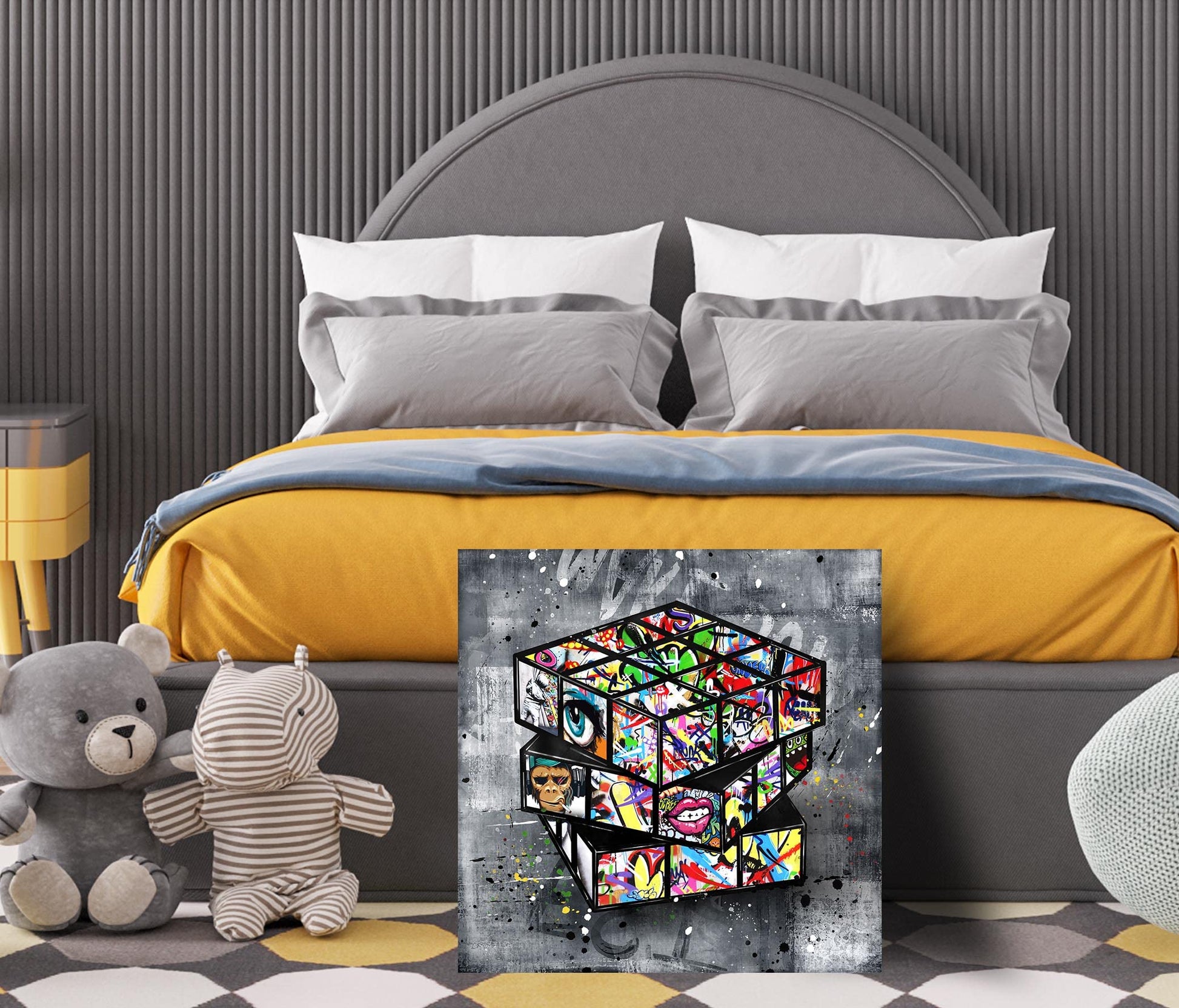 - 【EASY TO HANG】 Each panel of canvas prints already stretched on solid wooden frames, gallery wrapped, lightweight,ready to hang. The side margins are also printed to create a particularly decorative effect.banksy canvas wall art graffiti wall art abstract street art. Added color and fun to your bedroom, living room,office, dormitory or apartment.