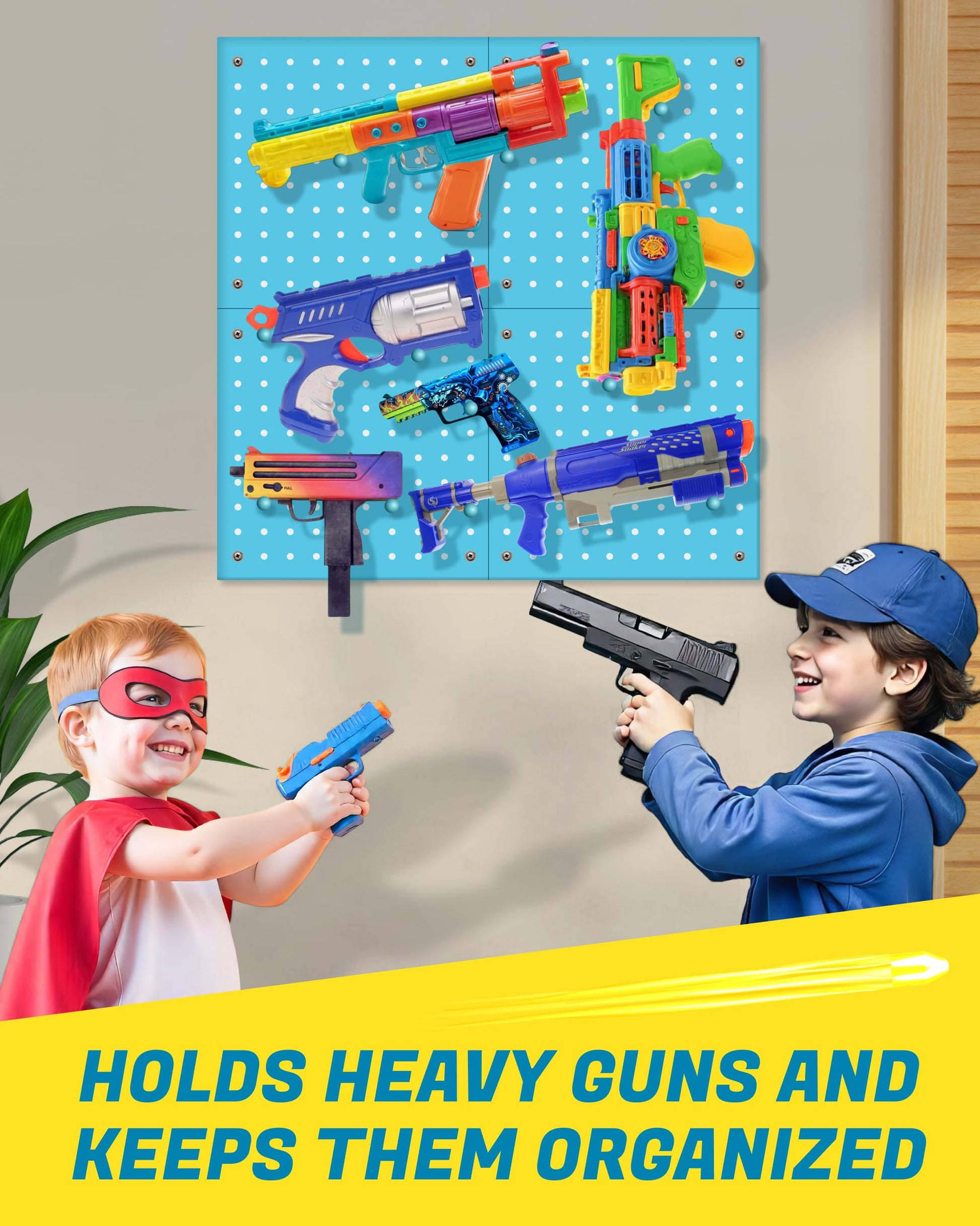 Skywin Peg Board for Nerf Gun Storage Organizer - Hanging Holder Compatible with All Blasters Nerf Gun Rack Organizer for Wall Organization (Blue)